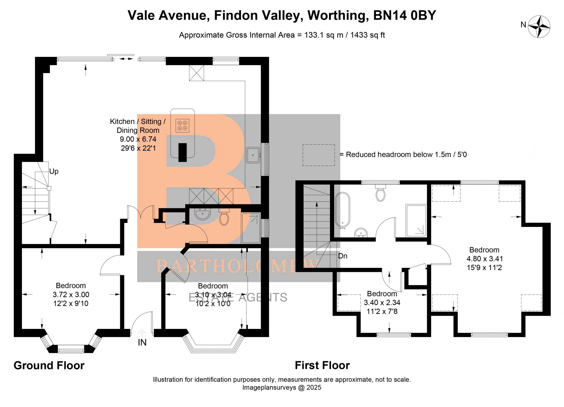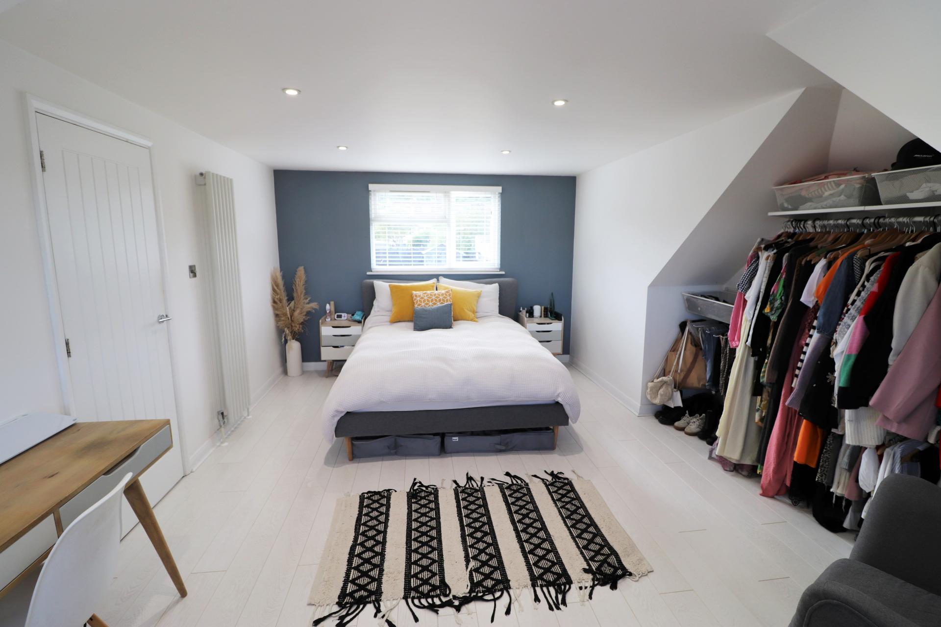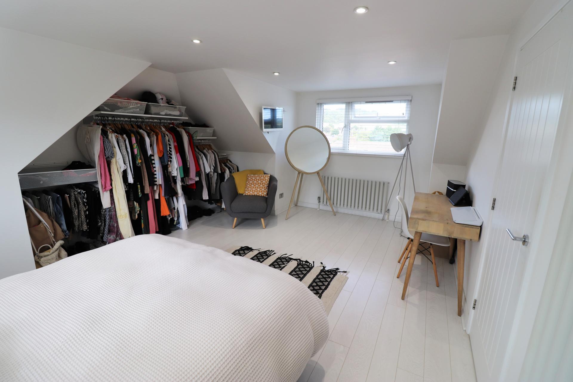 Double aspect room with double glazed windows to the front and rear giving outstanding views across Cissbury Ring and the Downs. Two tubular radiators. Inset ceiling spot lights.