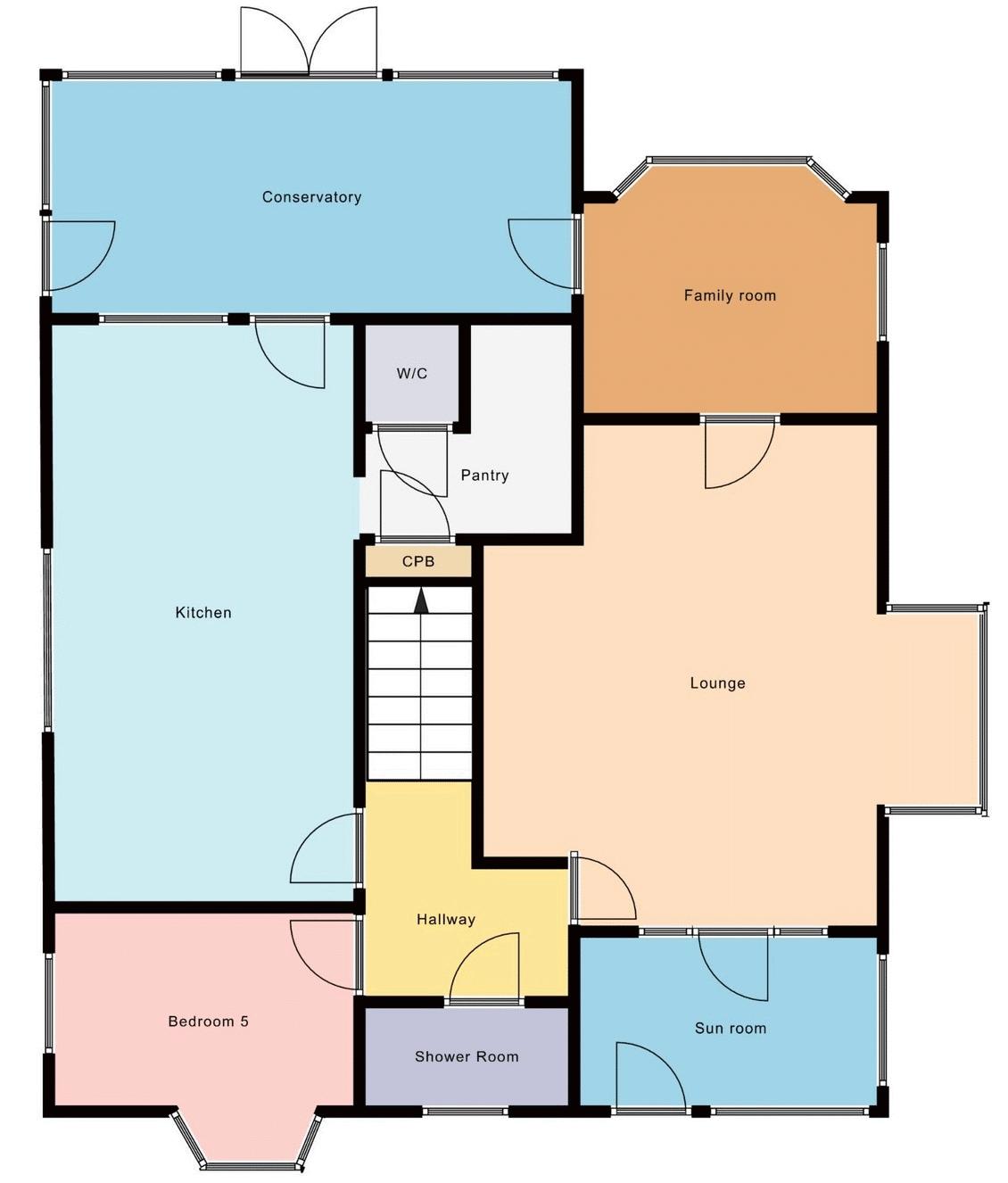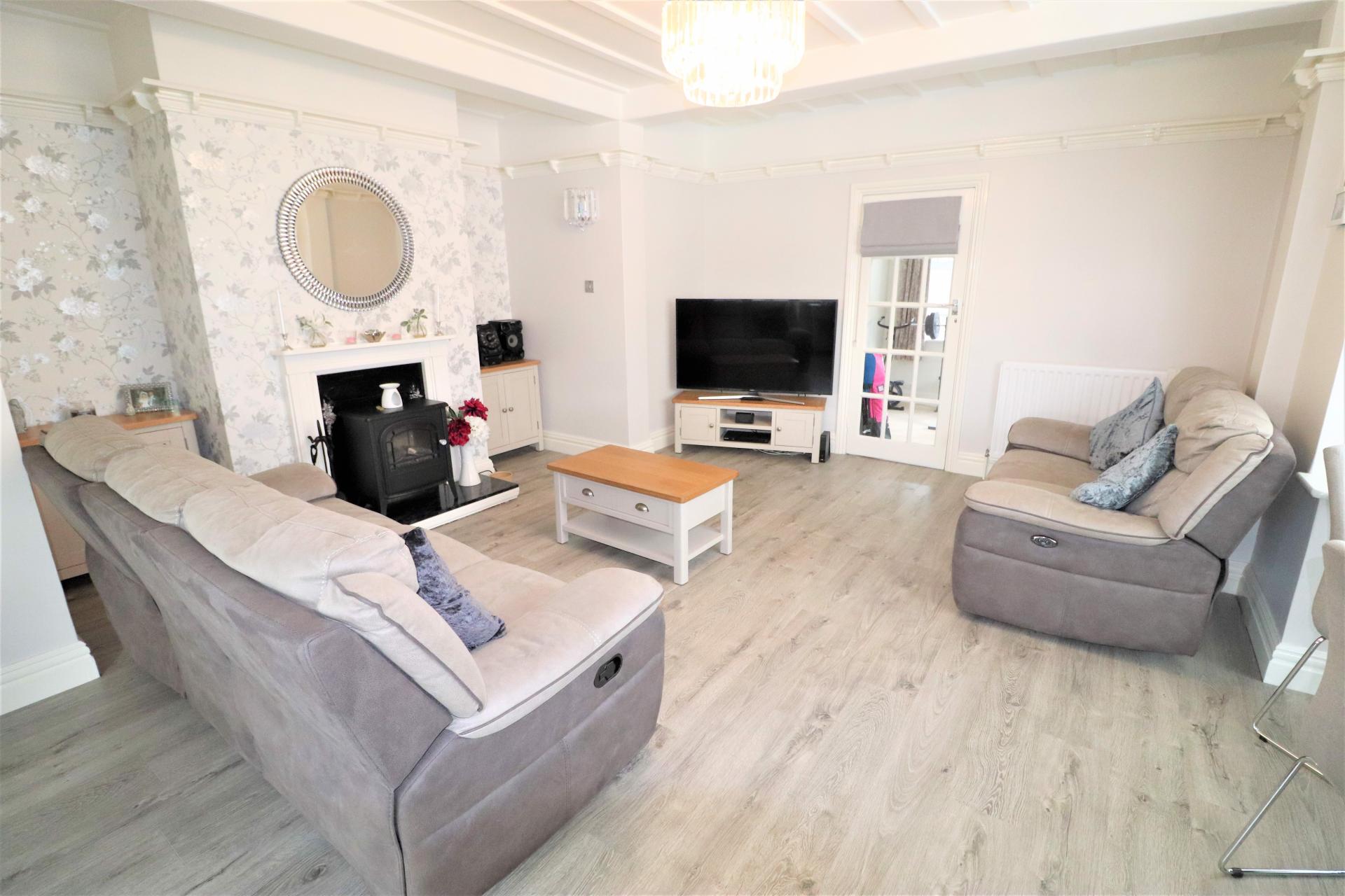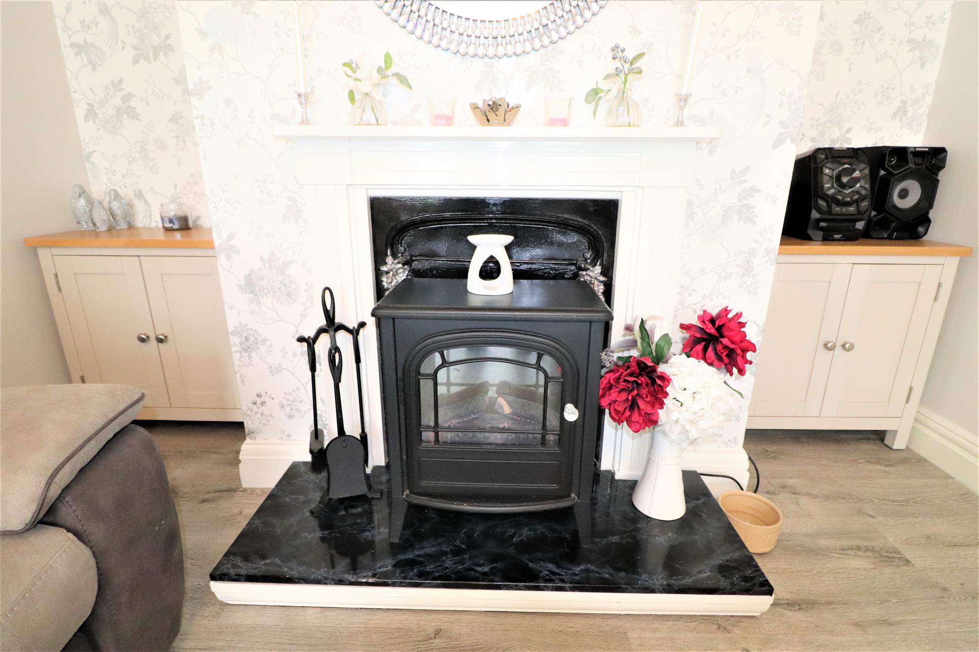 Double glazed leaded light box bay to the side. Two Leaded light windows to the front. Fireplace with electric, log effect wood burner. Two double panel radiators. Multi pane door to family room.