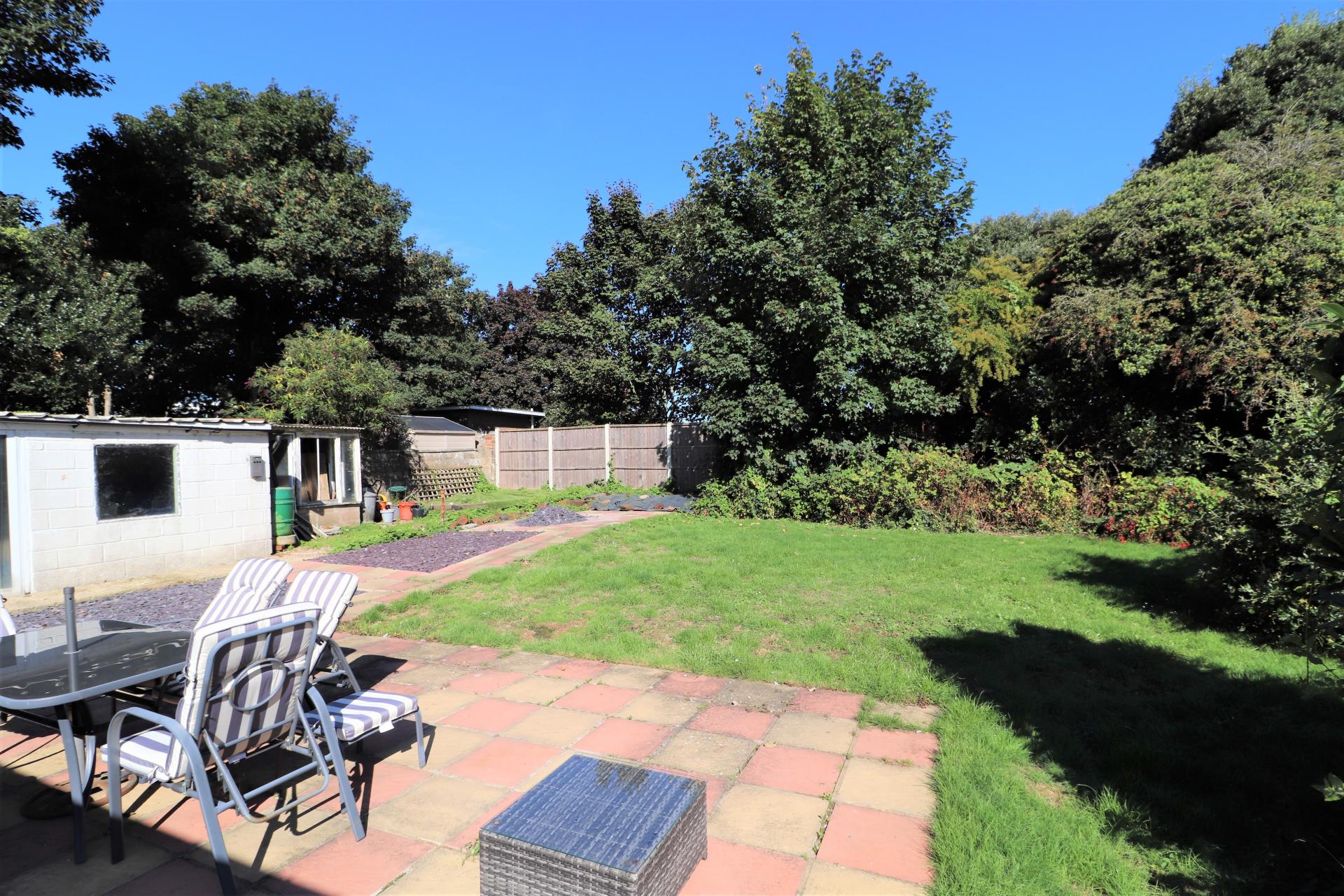 With paved patios and an area of lawn, a raised vegetable patch and a potting shed. There is also an additional shed and a sectioned off area with artificial grass, all overlooking the cricket field to the back.