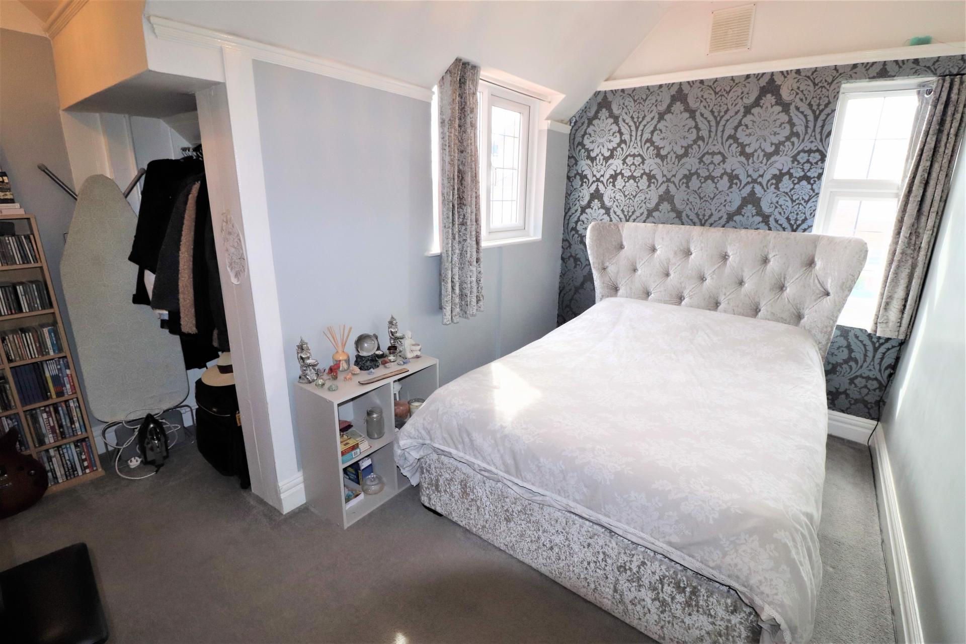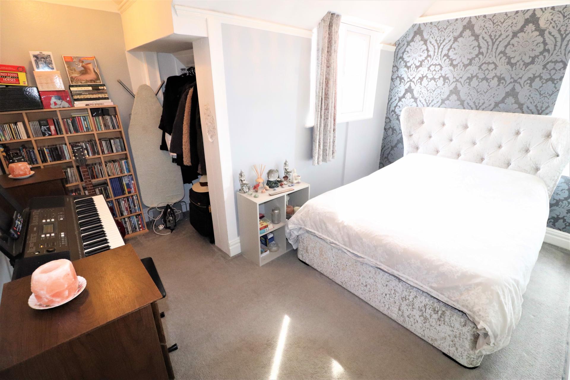 Double glazed, leaded light box window to the side. Double glazed, leaded light window to the front. Fitted double wardrobe with storage boxes over. Eaves storage space. Wash hand basin with tile splashback and vanity cupboard below. Double panel radiator. Picture rail.