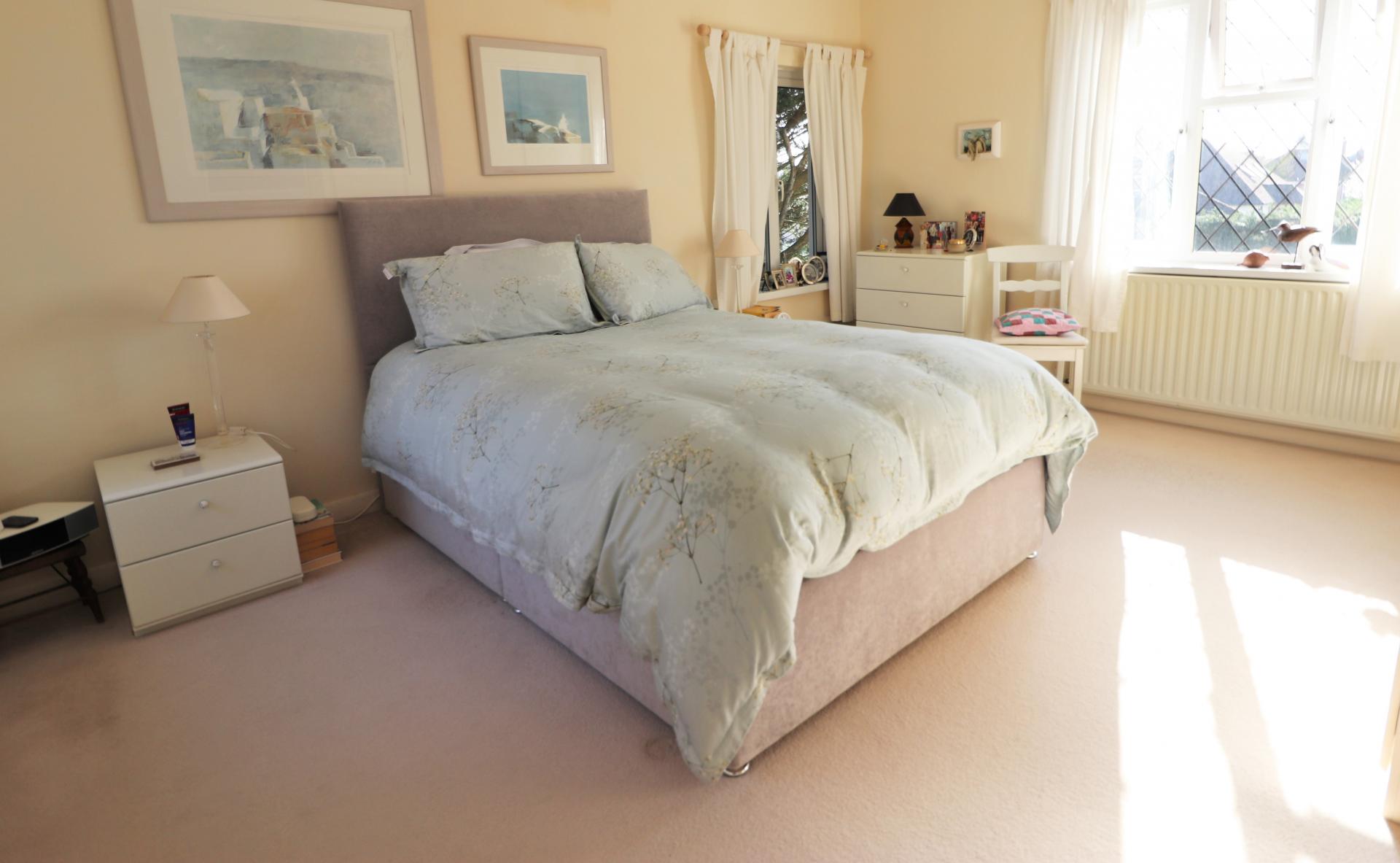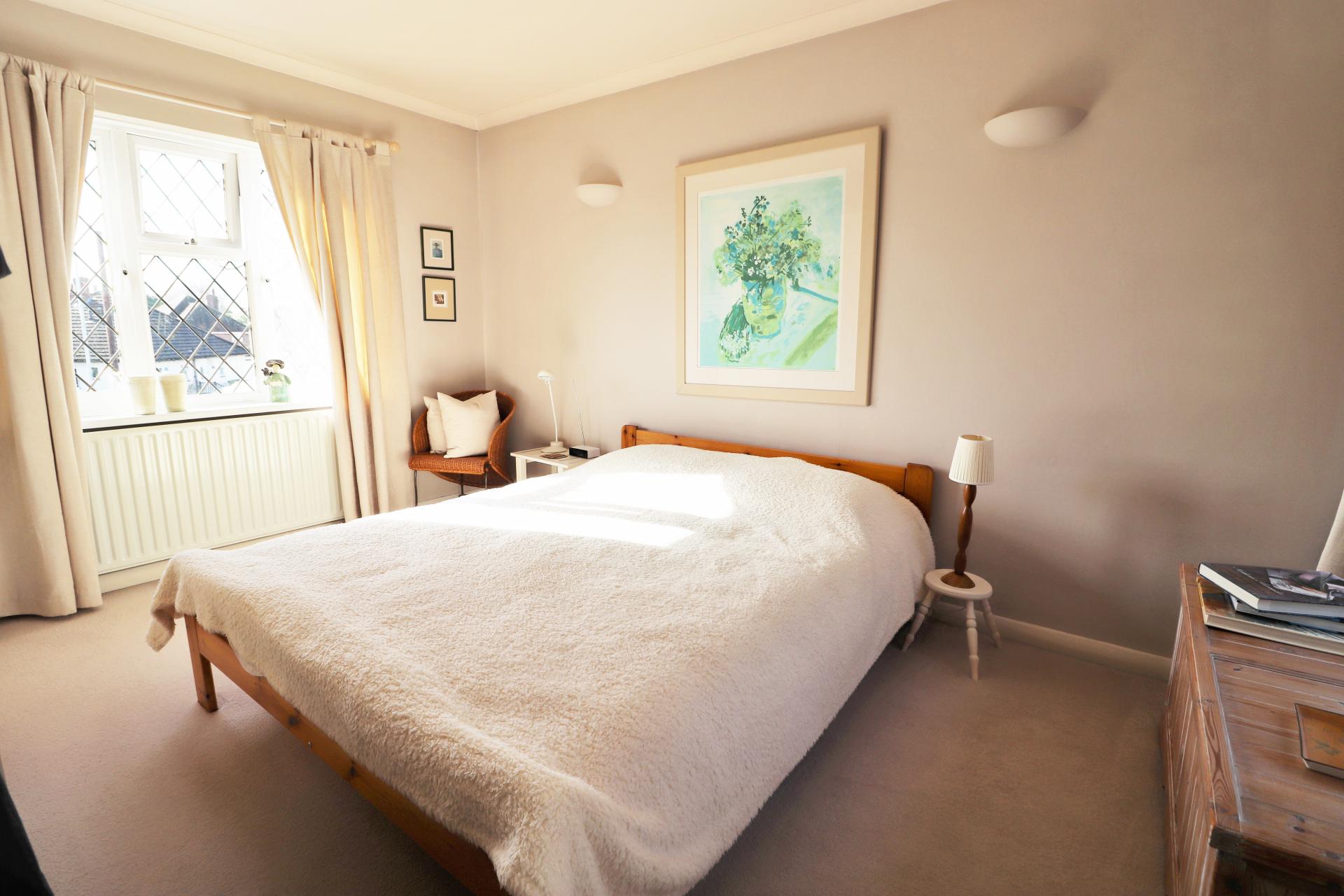 Triple aspect room with leaded light double glazed window to the front and additional double glazed windows to the side and rear. Two double fitted wardrobes and drawers. Two single panel radiators.