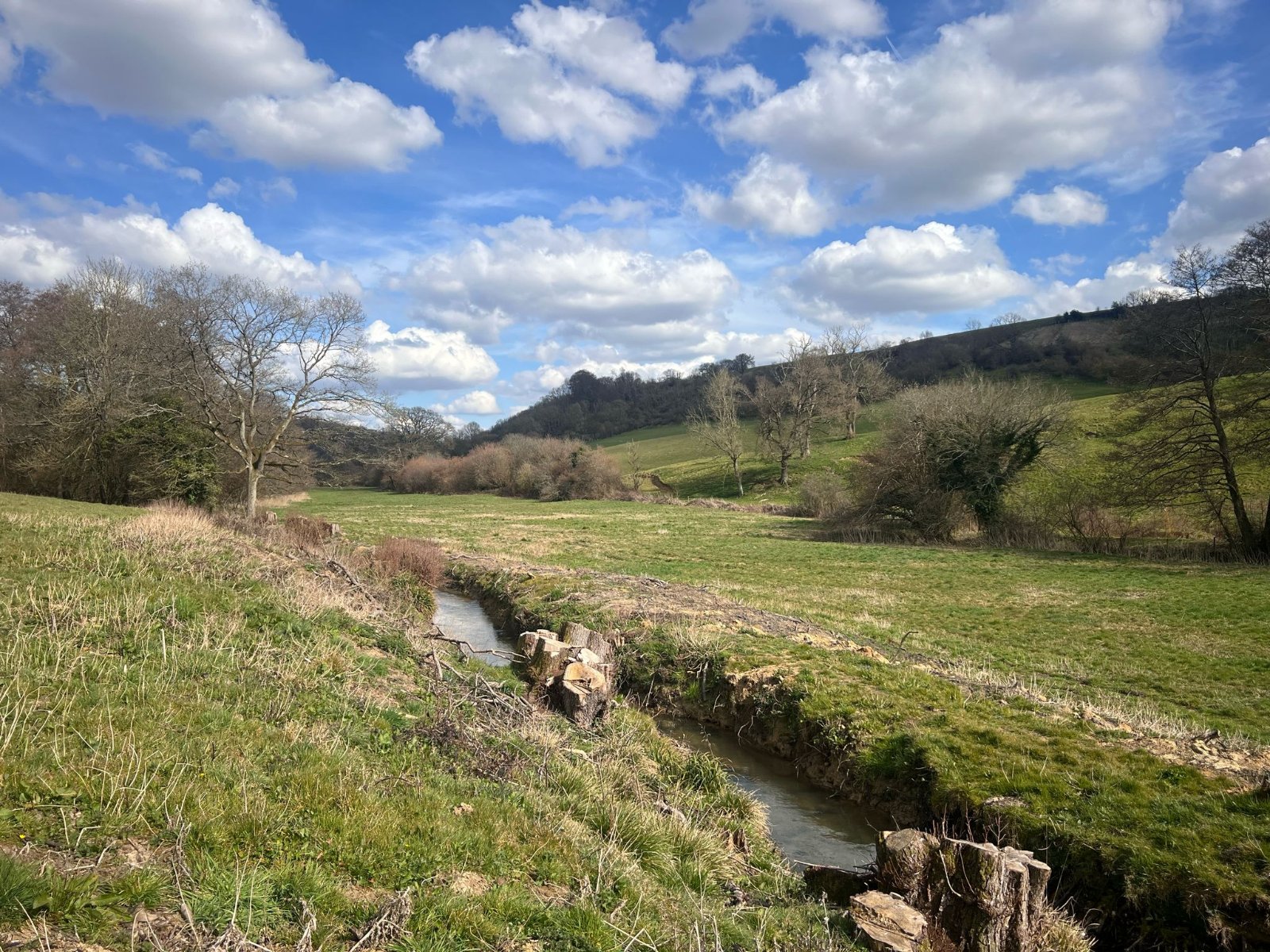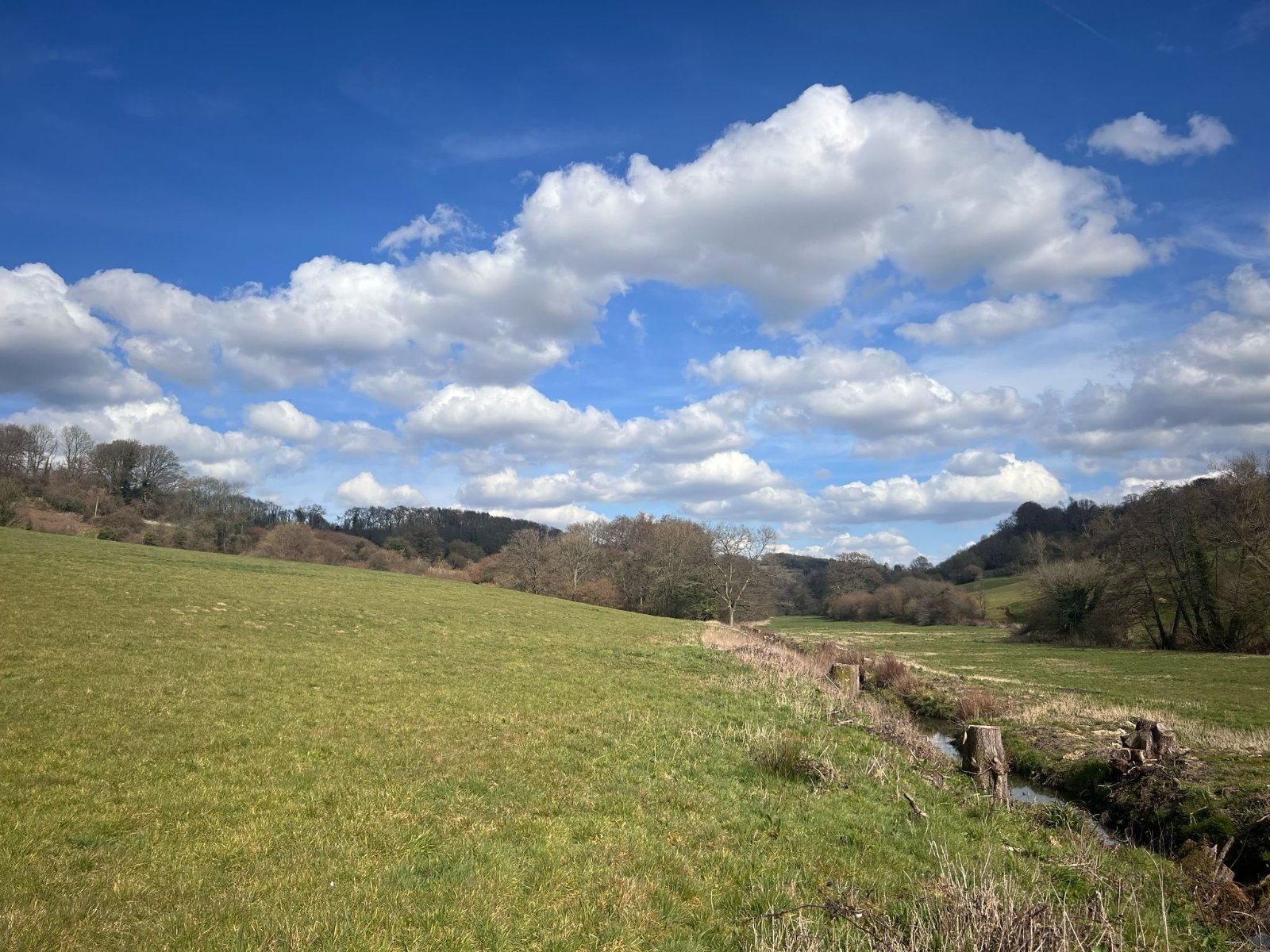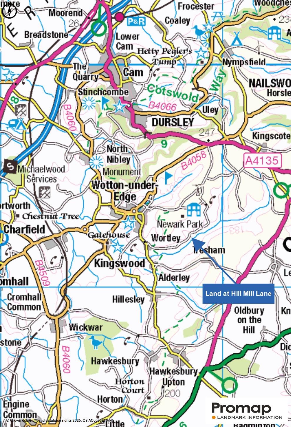Access is from Hill Mill Lane, a quiet backroad situated between Ozleworth and Wortley. The boundary against the lane is a neatly trimmed hedge. In the north-eastern corner of the land is a small woodland, from which run a number of springs which connect into the stream which runs through Ozleworth Bottom.