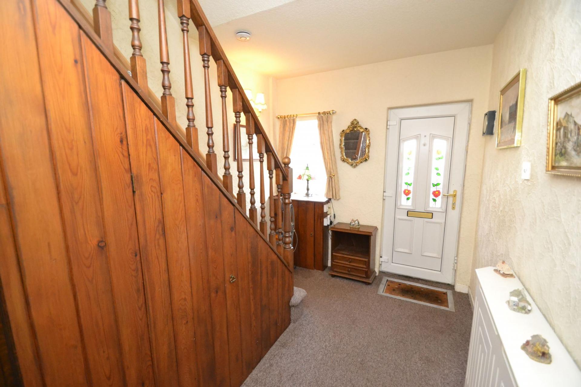 Entrance: Front door into the hallway, radiator, stairs with under stairs storage cupboard.