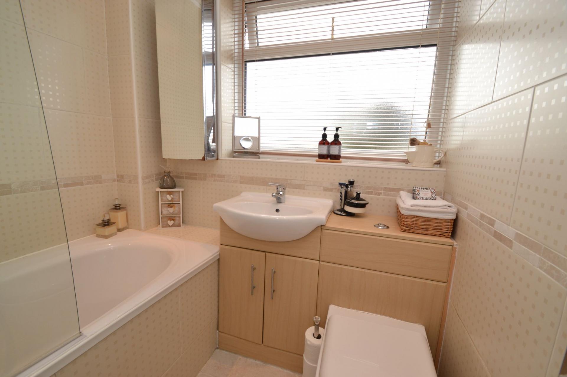 Bathroom: 1.95m x 1.78m (6'3 x 5'8). Three piece suite in white, chrome shower mixer tap, wash basin and wc set in an enclosed unit, electric Mira Sprint shower over the bath with a shower screen, fully tiled to walls and floor, cladded Upvc dg ceiling with inset lights and an extractor, frosted Upvc dg window, heated chrome towel rail.