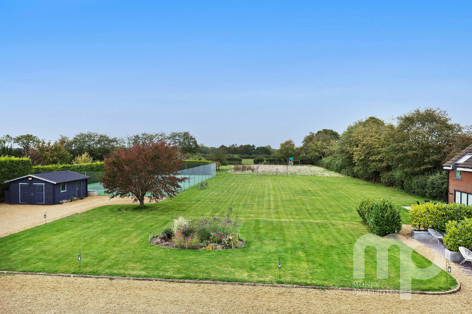 - The gardens are thoughtfully laid out and include formal lawns, an orchard and meadow, creating a picturesque and tranquil backdrop
