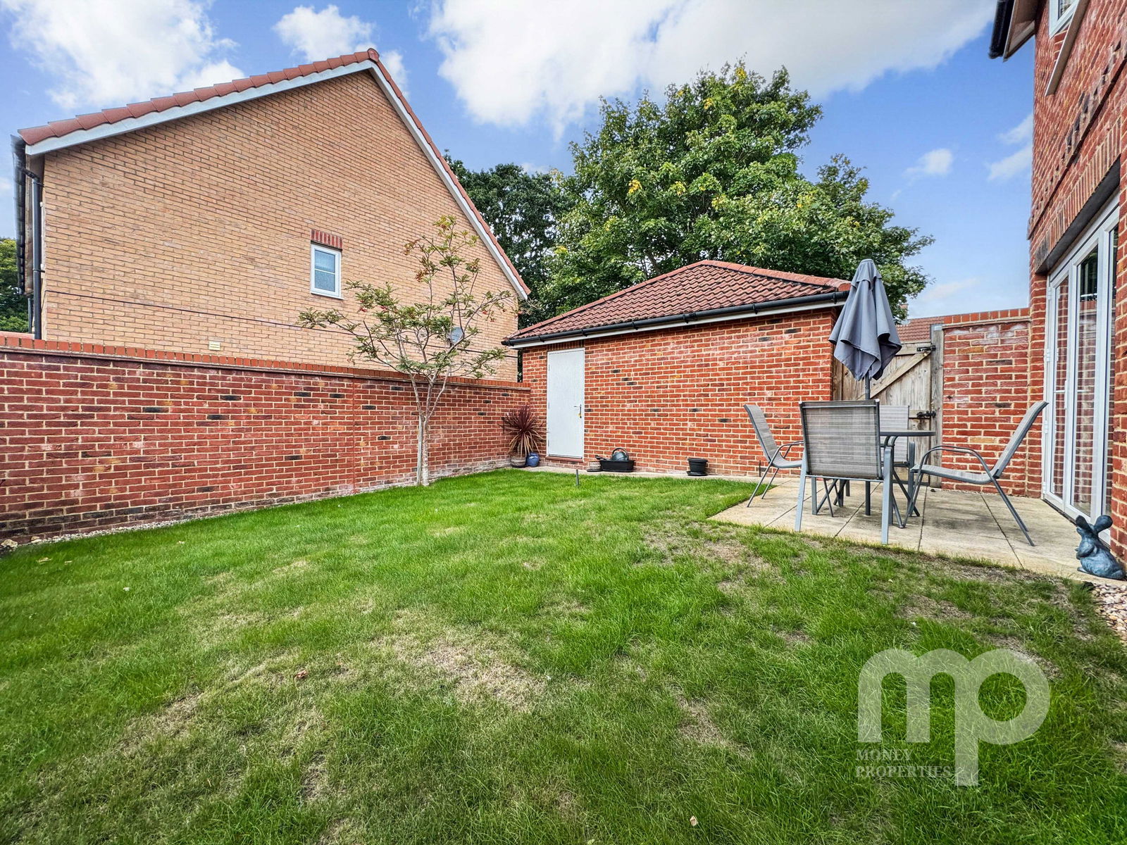 - 25ft enclosed garden with a patio area