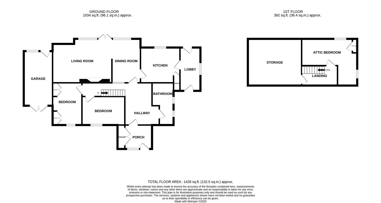 - The property offers approximately 1200 sq ft of living space over two floors