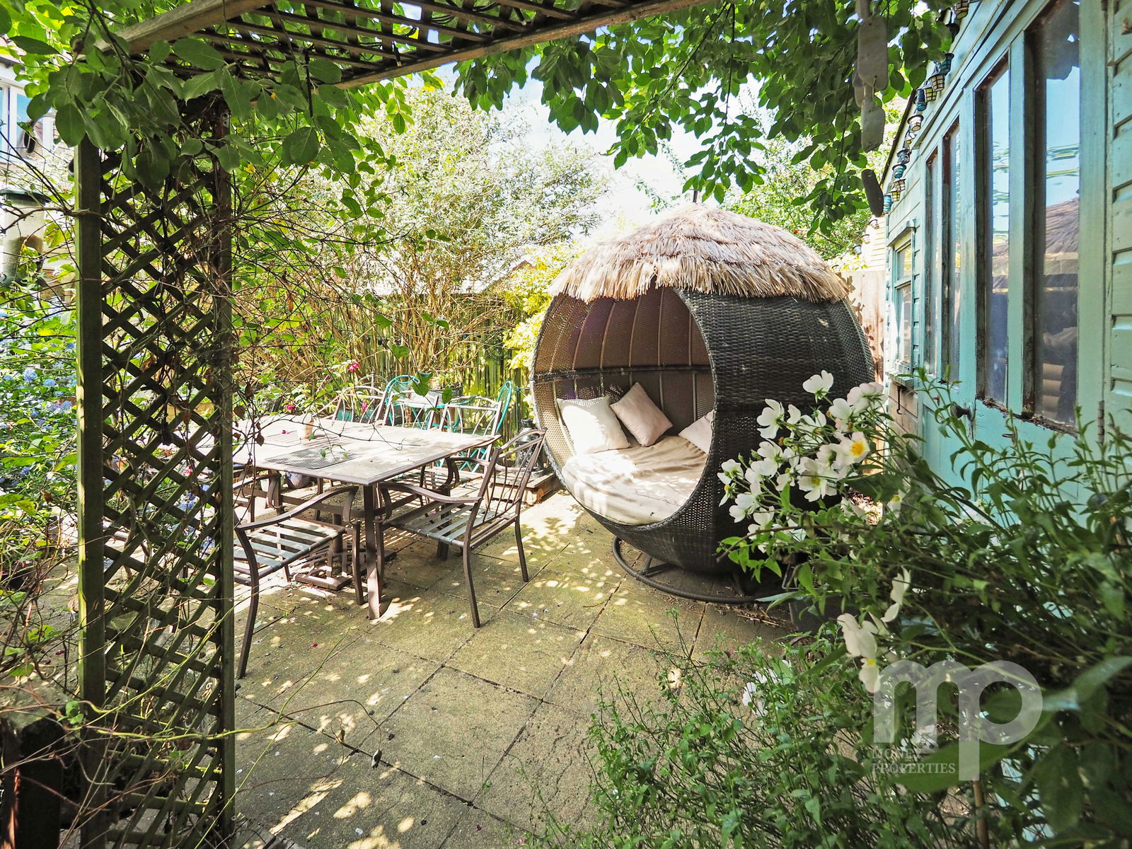 - Mature private rear garden with a patio seating area and summer house