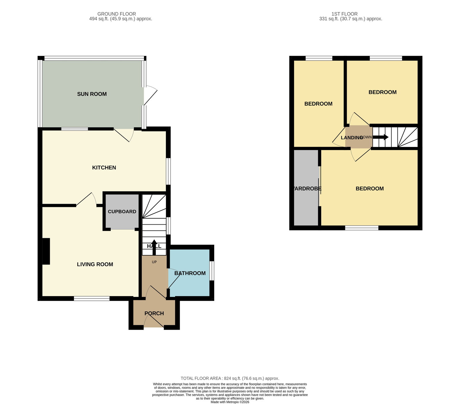 - 100ft rear garden with Brick storage shed 16ft x 6ft and metal shed 12ft x 10ft both with electrics
