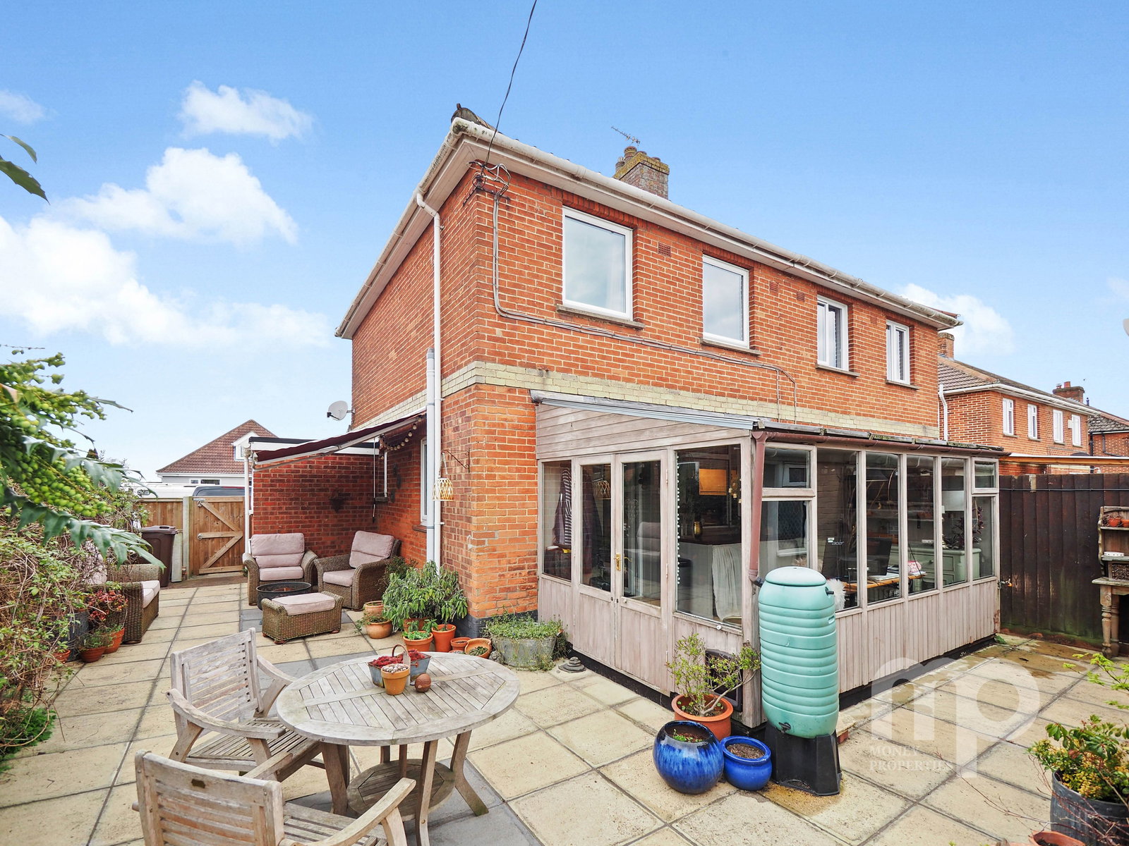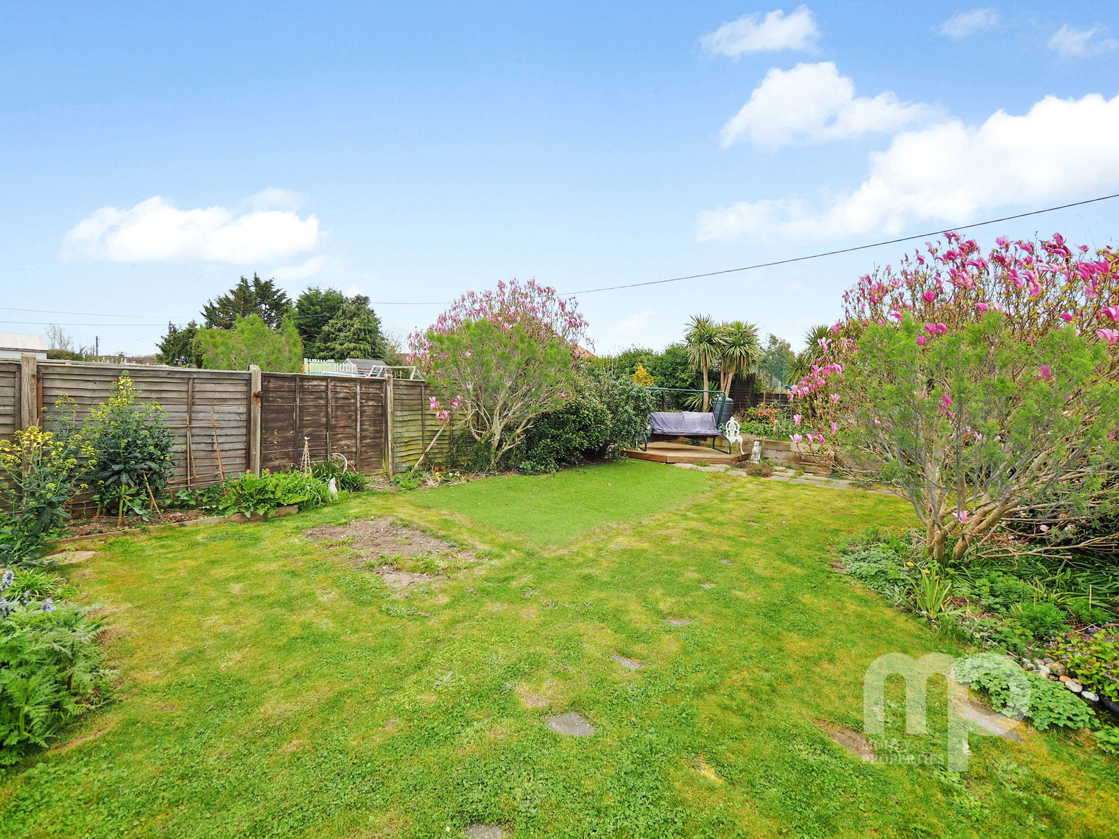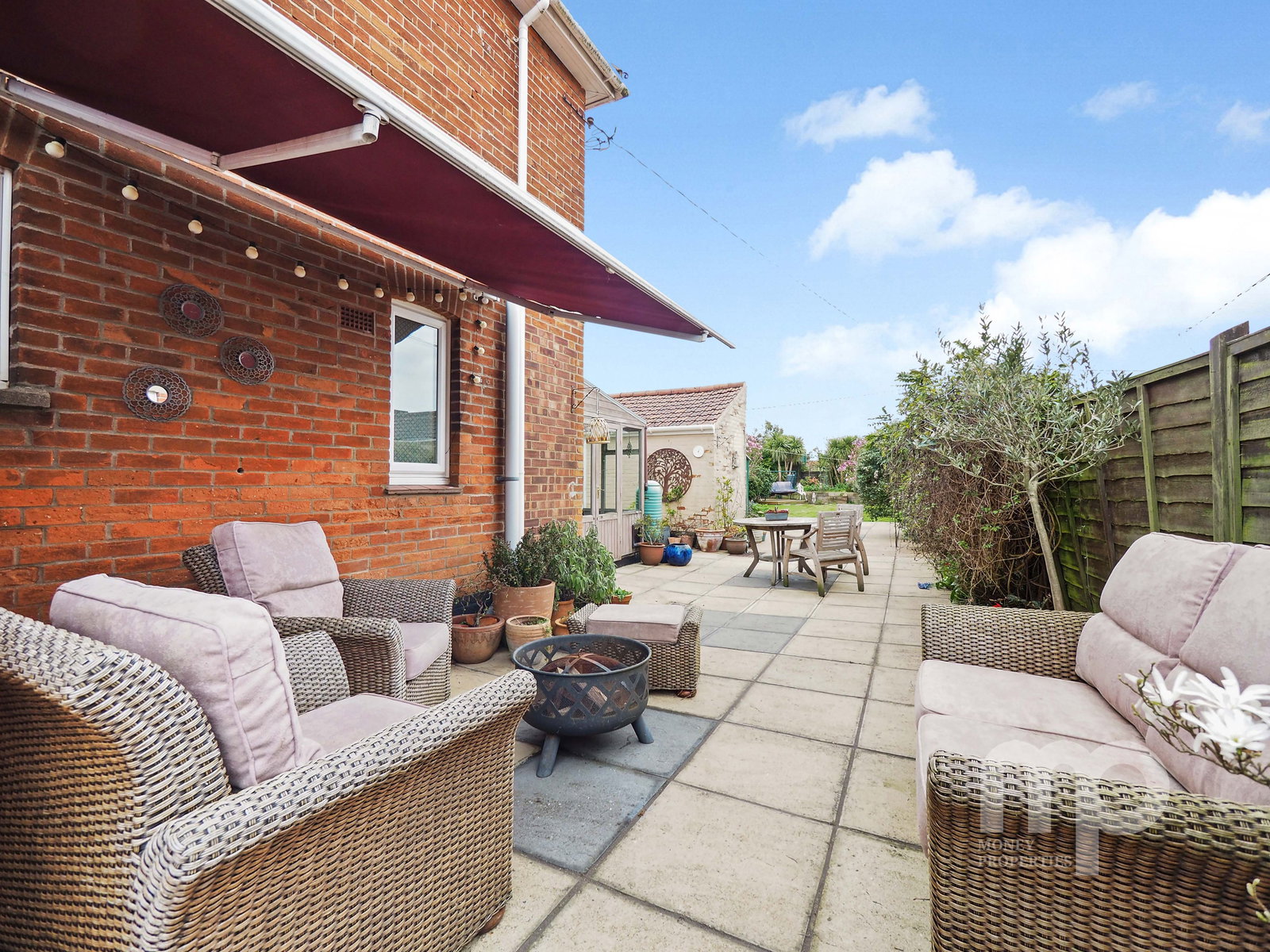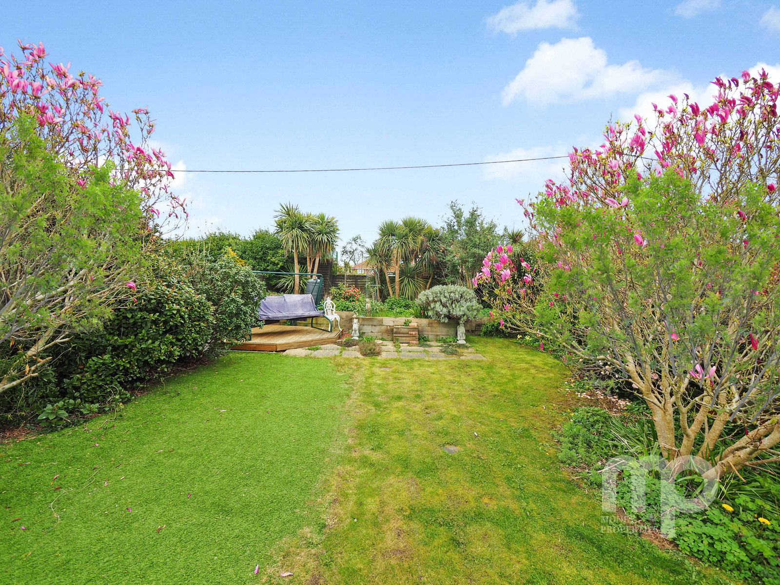 - Both natural and artificial lawns, and a variety of trees and shrubs, providing a private and versatile outdoor space