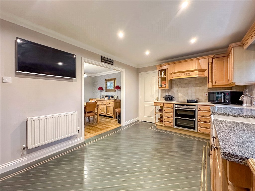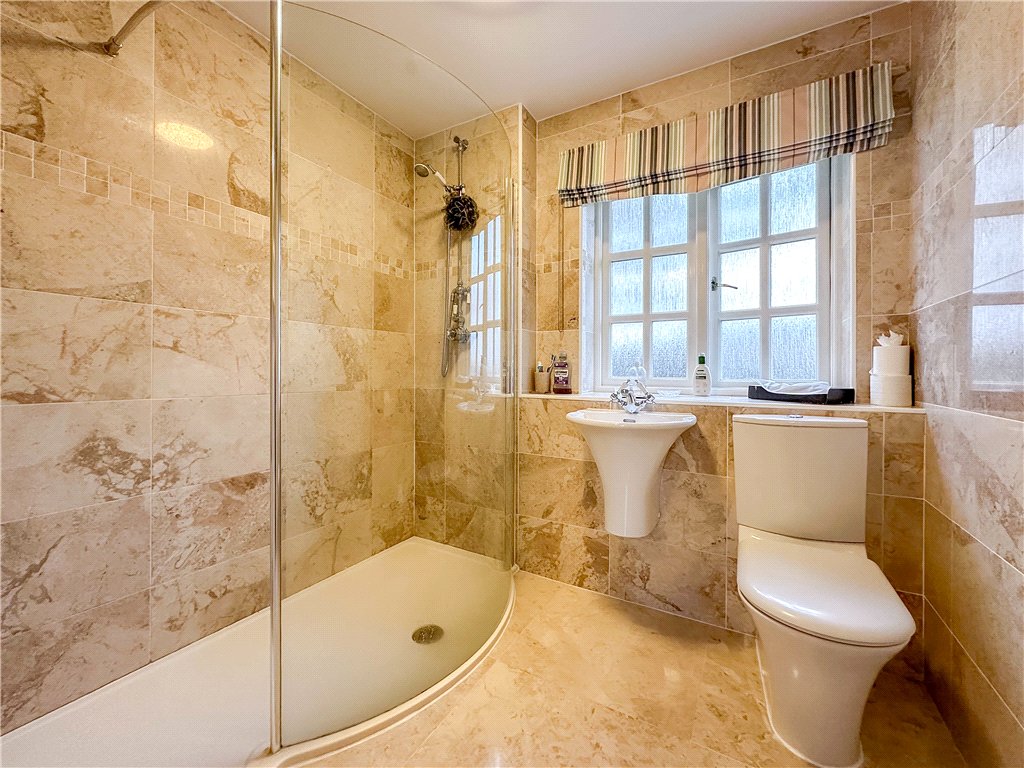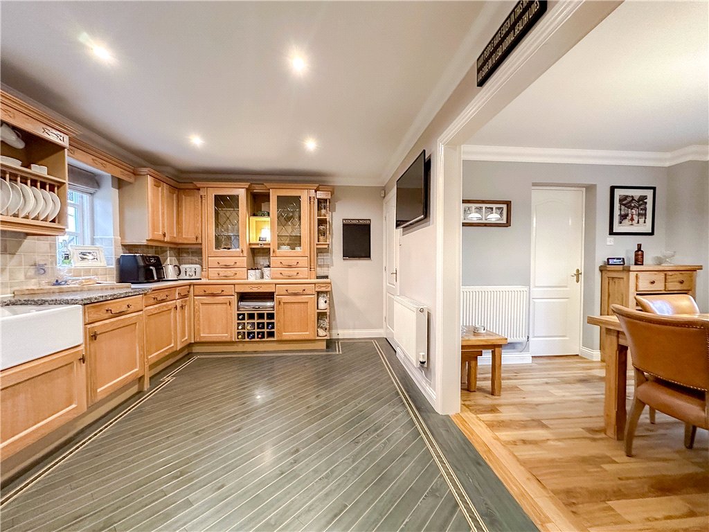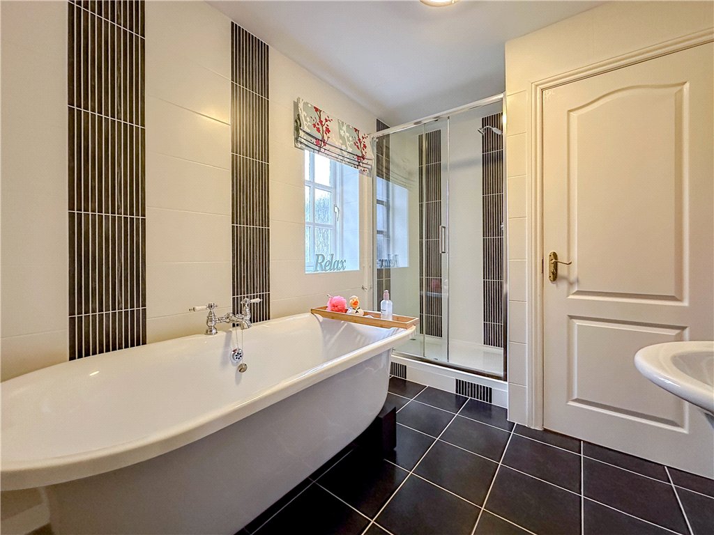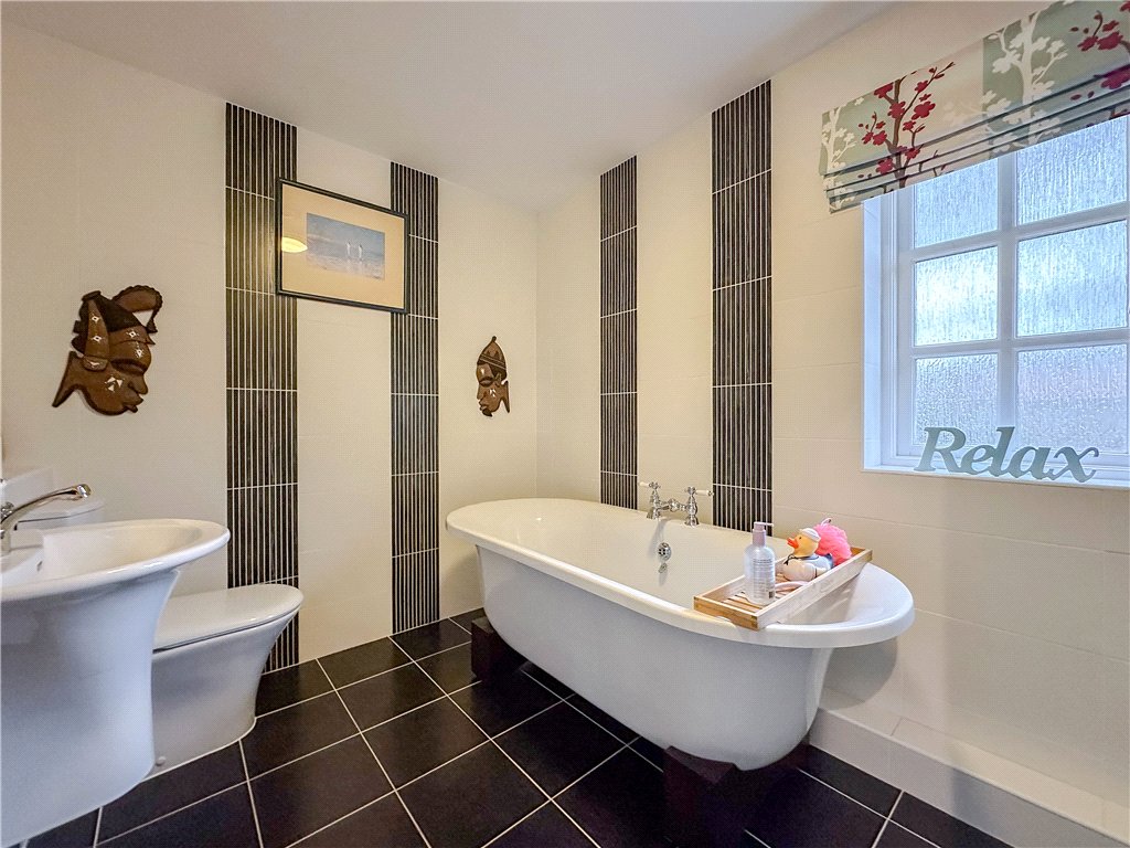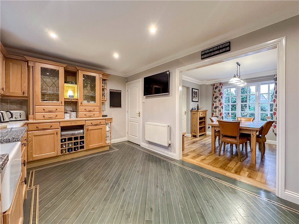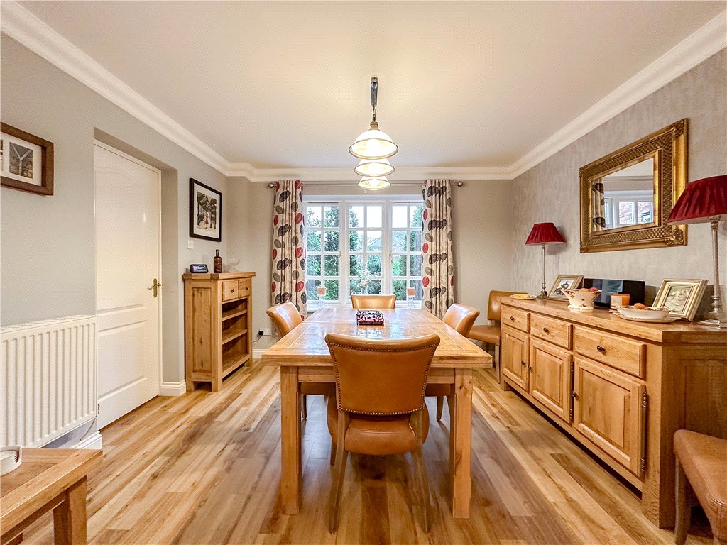 Offering an indulgent 2368sqft (approx.) living space, well-suited for family living. In brief, accommodation comprises: An external storm porch, welcoming entrance hallway with a feature central staircase, washroom, storage and parquet flooring, full depth lounge complete with French doors to the rear and a multi-fuel burning stove, a rear reception room which overlooks the garden and could be used as a snug / playroom. To the left of the hallway is an open plan dining room / kitchen - the dining room is position to the front of the property and the kitchen to the rear. The kitchen features light oak base / wall units, complimented by integrated cookware and an inset sink unit. The dining room features oak flooring and the kitchen boasts Karndean flooring. Completing the ground floor is a utility room accessed just off the kitchen. A generous landing leads to all four double bedrooms and the family bathroom. The principle suite features a stylish en-suite shower room and dressing room. Bedroom two benefits from an upgraded, contemporary en-suite shower room. The four piece family bathroom has been upgraded and features a freestanding rolltop bath and walk in shower.