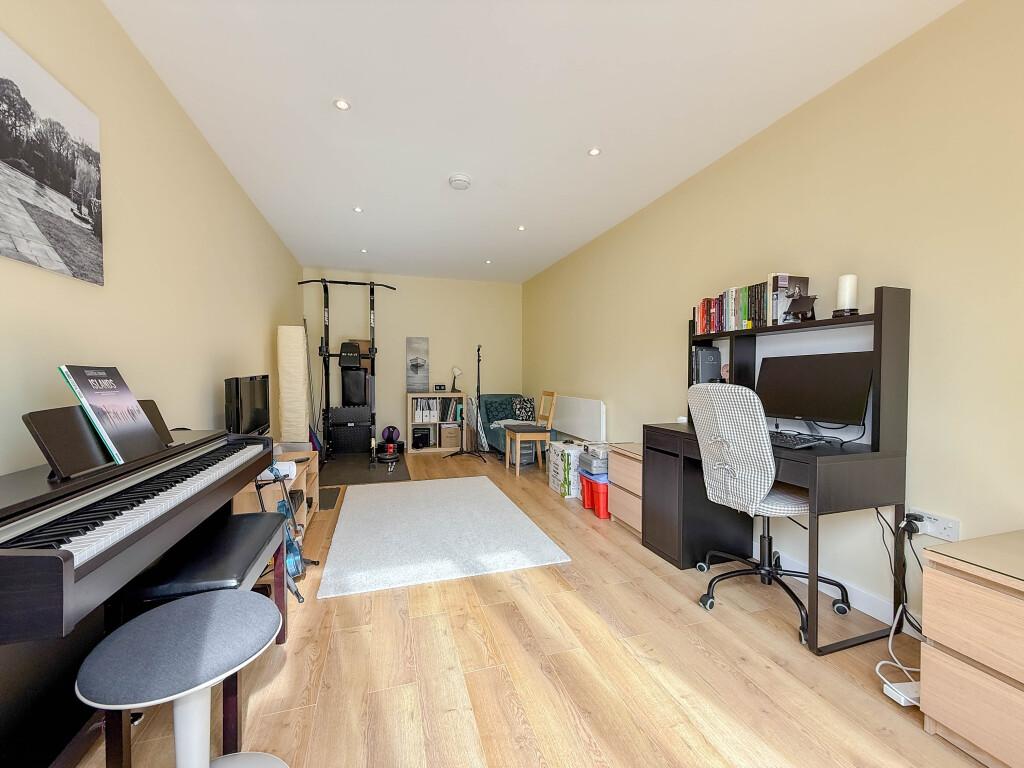 Externally, the home is complemented by a neat front garden and a well established westerly facing rear garden, perfect for enjoying the afternoon sun. A tandem driveway provides off street parking and leads to a single garage which has been professionally converted with a bi folding door, offering versatile space for a variety of uses such as a home office, gym, or playroom.