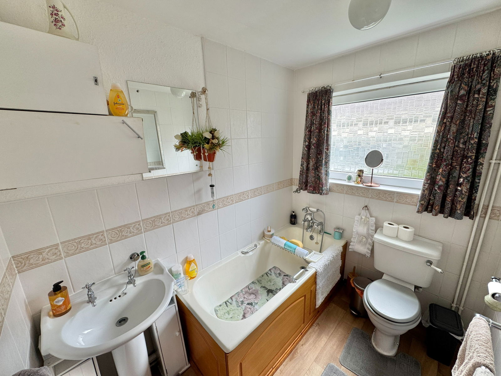 Bedroom one is a spacious double with a range of fitted wardrobes and an en-suite shower room with a low level W.C pedestal wash hand basin and a tiled shower cubicle with a folding glass screen and an electric shower unit. Bedroom two, a further double has a window to the side elevation and fitted wardrobes. Bedroom three, a small double has a window to the front. The family bathroom is fitted with a white three piece suite comprising low level W.C, panel enclosed bath and wash hand basin, fully tiled walls and window to the side elevation.