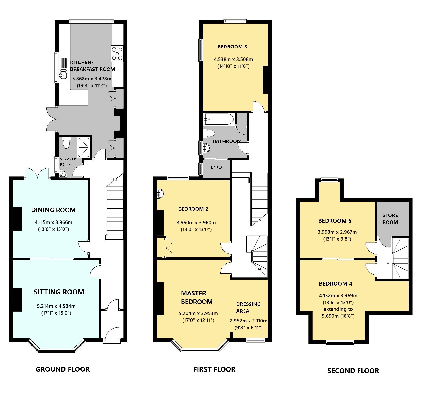 On the first floor are three spacious double bedrooms and the family bathroom. The main bedroom benefits from a dressing area and a pleasant green outlook. A staircase from the landing leads to the second floor where there are two further double bedrooms and a store room. This is a versatile space which can be used as one large room, or separated into two with sliding oak doors - ideal for any home workers or a larger family.