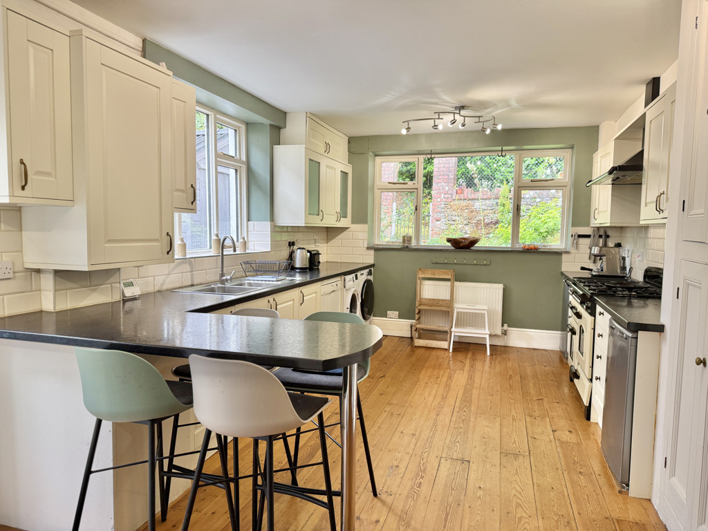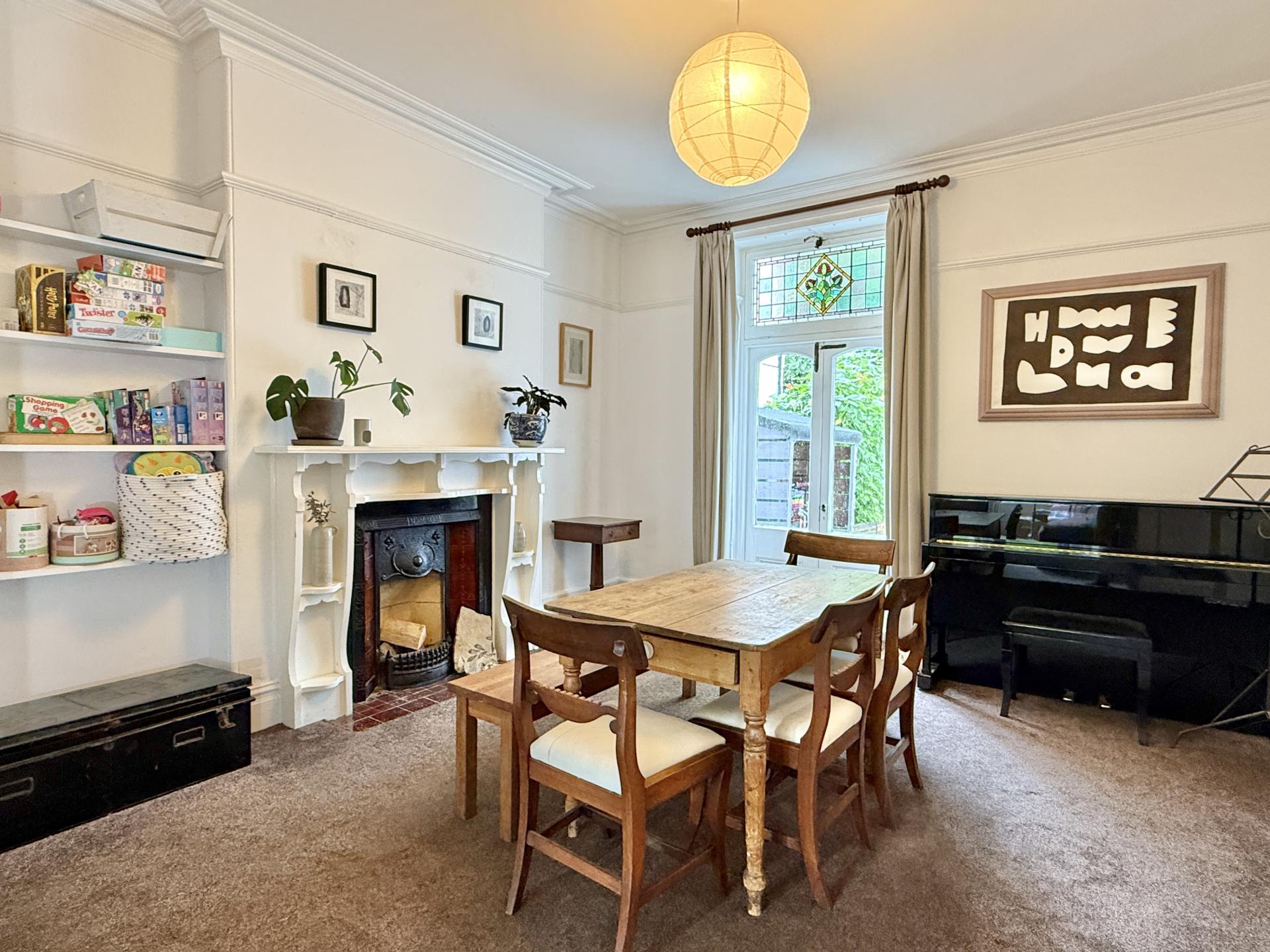 A spacious period town house situated on a no-through road within walking distance to Yelverton village. This handsome terraced property has a lovely red brick facade and has retained many of its original features including fireplaces, doors and wooden floorboards as well as an attractive stained glass window. The bright and airy ground floor accommodation consists of a large sitting room with a bay window and log burner, opening in to a dining room with French doors on to the garden. There is a useful shower room with WC and plenty of under stairs storage space, before you reach the kitchen at the back of the house. This room is also a good size and has a breakfast bar area, with character from some original cupboards and a Rangemaster.