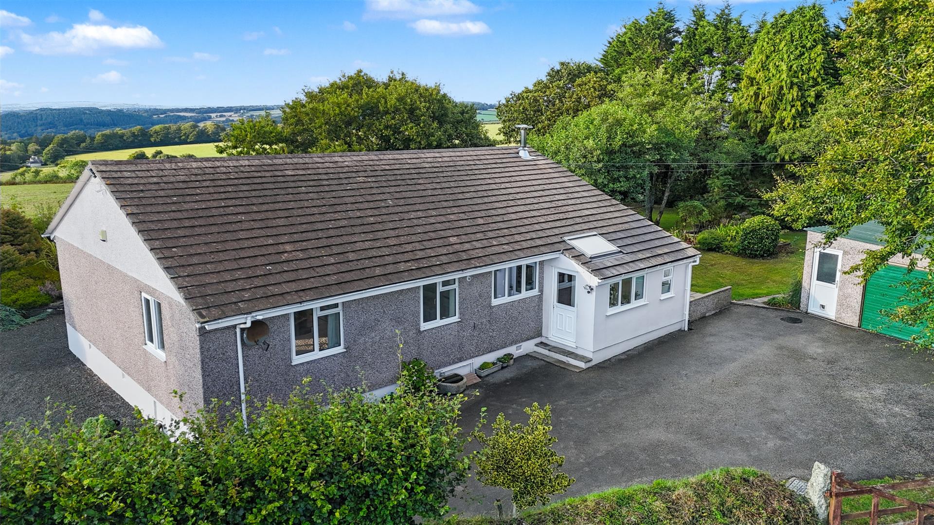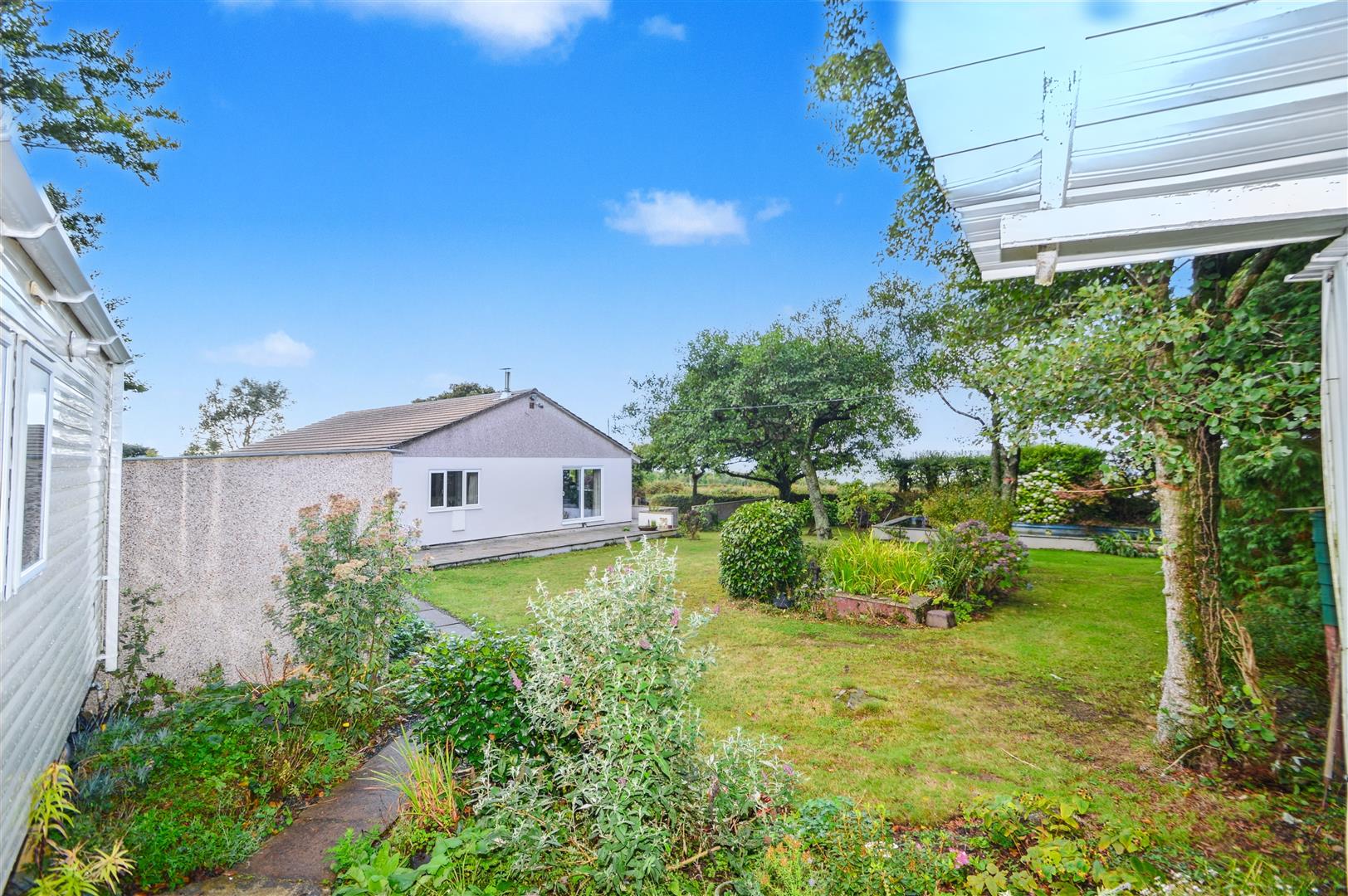 Outside - From the road a gated entrance opens onto a tarmacadam entrance drive which leads to the rear parking area and garage. Bordering the drive is a large, gravelled area which leads to the front of the bungalow with lawned garden and well stocked flowerbed borders and enjoying far reaching views over the surrounding countryside to Cornwall beyond. At the side of the bungalow is a large lawned garden interspersed with a variety of trees and flowering shrubs, flowerbed borders and a large fish pond. From the rear parking a gate opens onto a large, enclosed level lawn garden interspersed with a variety of trees and shrubs and enclosed within traditional Devon bank hedging. There is a large level area of grassland, partly planted with an established orchard, various varieties of Apple trees, vegetable beds, two aluminium framed greenhouses and area with potential for a small paddock.