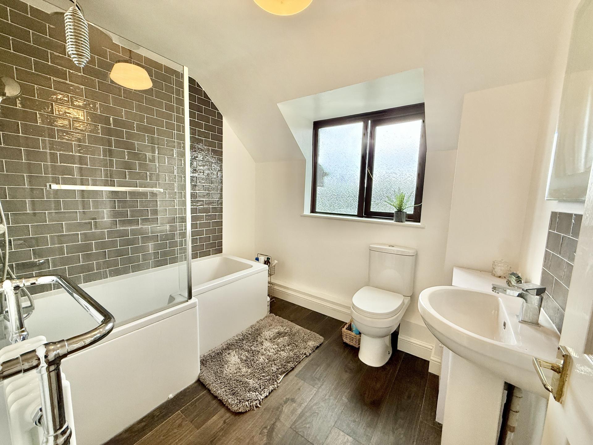 The first floor has four bedrooms, two of which are good size doubles, one with fitted wardrobes and the other with a walk in wardrobe. The two smaller bedrooms are at the rear and benefit from the lovely views, one also having fitted wardrobes. The family bathroom has been recently refurbished with a modern white suite and attractive metro-style tiling.