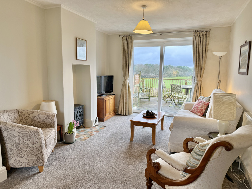 The rear gardens are a good size and back on to open farmland. There is a raised deck on the back of the house to sit out on and enjoy the views, with steps leading down to a patio. The rest of the garden is laid to lawn with an interesting mix of trees and shrubs, plus a pond and shed at the bottom. The front is enclosed by gates with parking for two cars and a small gravelled border. The house benefits from solar panels and gas central heating.
