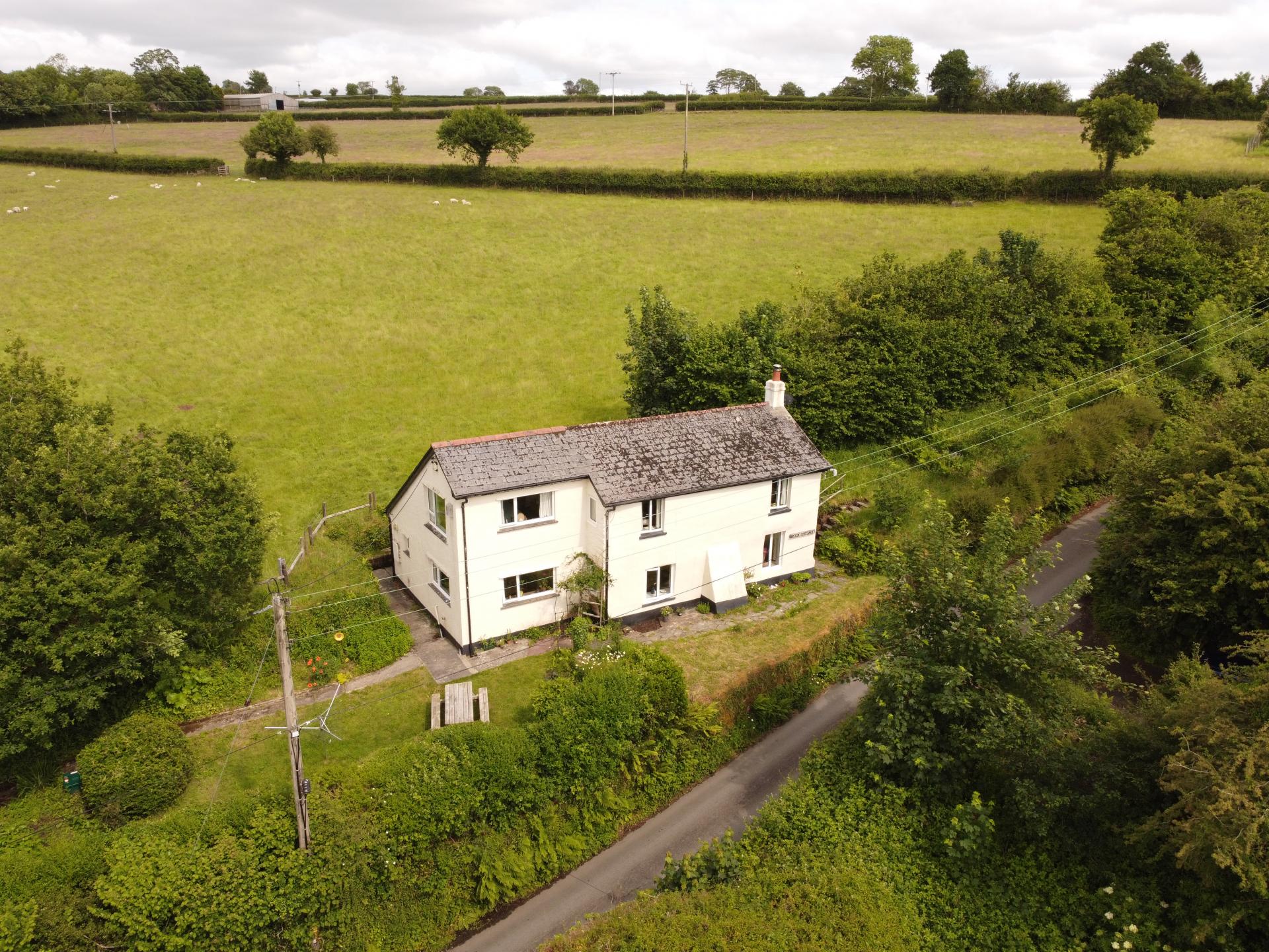 A detached three double bedroom character cottage situated on the edge of Sampford Spiney, dating back approximately 200 years. Brook Cottage is a former farm workers cottage which was extended to provide a good size kitchen and third double bedroom upstairs. The property sits in an elevated position overlooking nearby fields and countryside, with pleasant green views from most windows. Downstairs you enter to a lobby with cloakroom, store room for logs and cloaks cupboard, then through to a kitchen with double aspect windows and a separate larder, with plenty of other storage. The sitting and dining rooms have been combined to provide a spacious but cosy reception room with character features including painted beams, recess shelving and a log burner. An inner hallway leads to a study plus the downstairs bathroom which has a shower over the bath. Upstairs are three good size double bedrooms, all of which have some kind of built in storage.