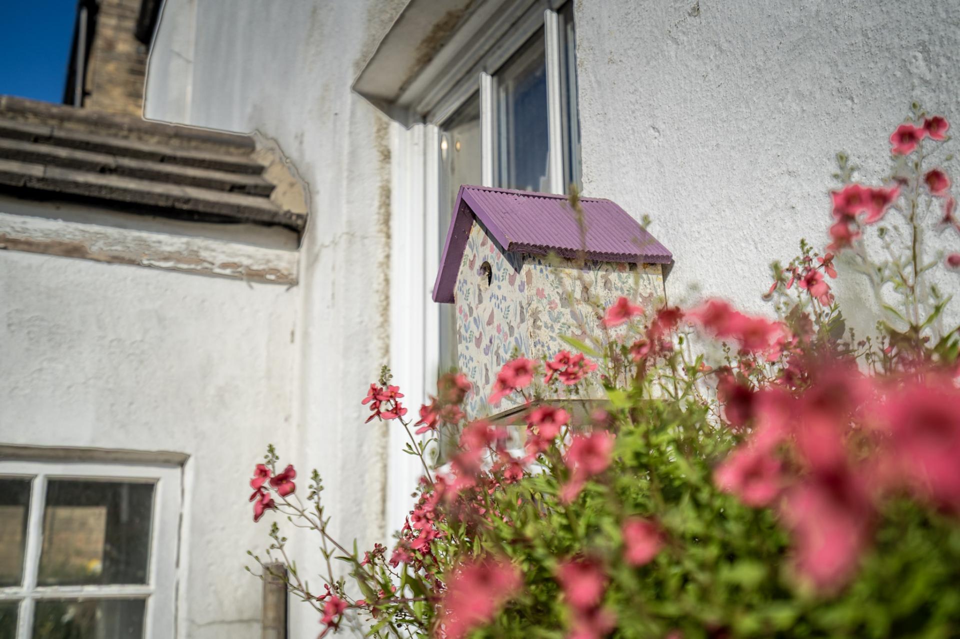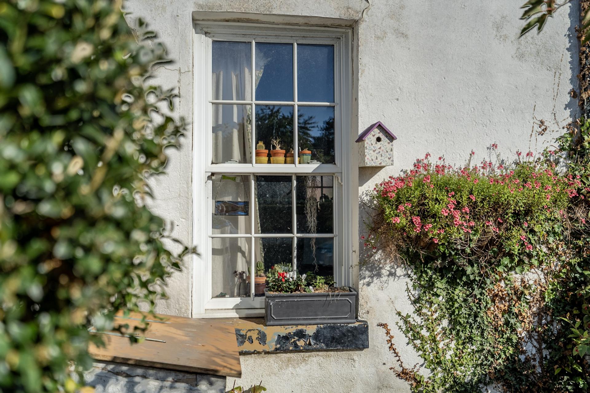 OUTSIDE The front of the property has a small garden with planted borders and a paved path to the front door.