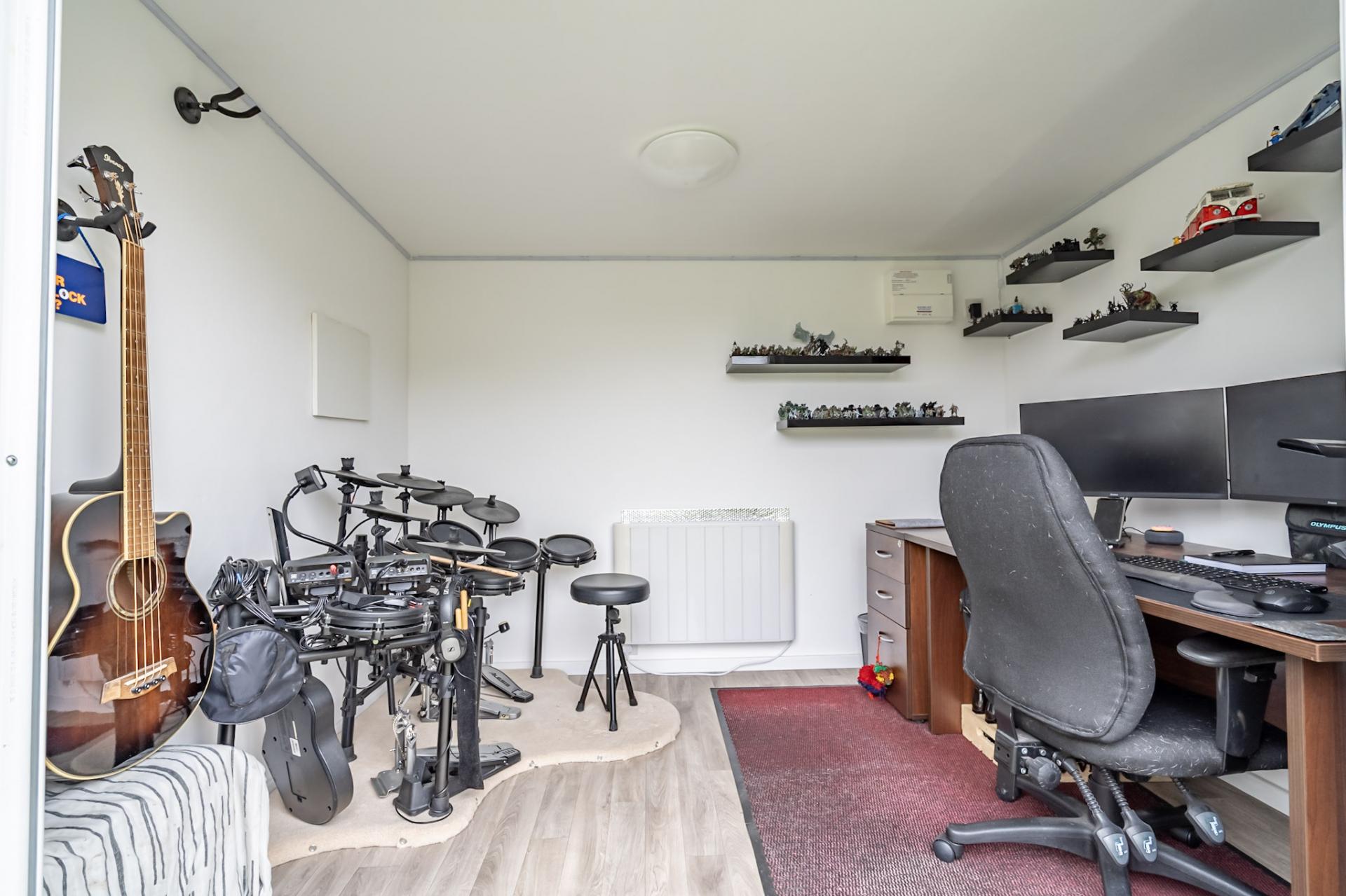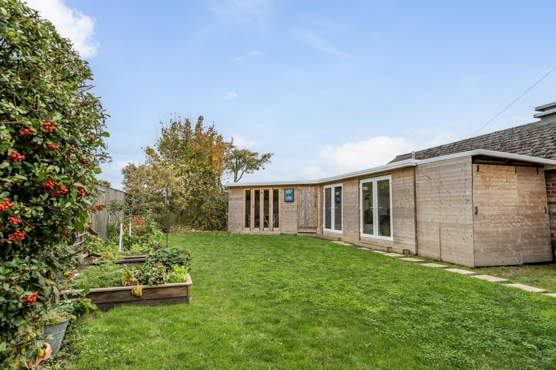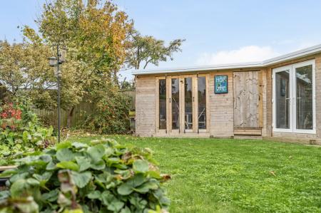 Externally the rear garden is easterly facing and is enclosed to all sides with a high degree of privacy. It very much has the feel of a cottage garden with flower beds, shrub borders and raised vegetable patches. There is also a patio and a sizeable lawn area, ideal for families with children or pets. In addition there is a timber summerhouse with bi-folding doors, bike storage and a timber log store/shed and a further two work spaces all cleverly nestled together. There is gated side access leading to the front and double opening doors leading into the rear of the drive-through garage.