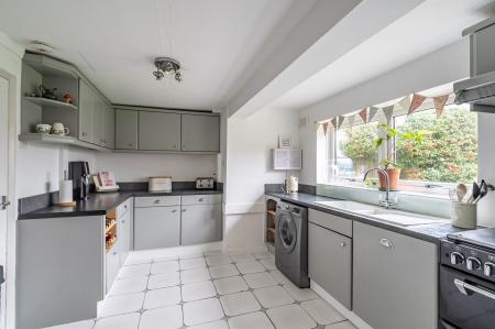 Moving through into the fitted breakfast kitchen which has delightful views on to the enclosed rear garden fitted with a range of cupboards, matching units and worktops, free standing cooker with extractor, space for a fridge, washing machine and dishwasher. A door leads on to the rear porch and to a well placed downstairs w/c.