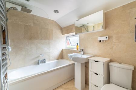 To the first floor there are four bedrooms, The master bedroom is appointed with built in wardrobes and the family bathroom is a contemporary white suite with travertine tiled walls and flooring, comprising bath with centre waterfall mixer tap and rainfall shower. A storage cupboard on the landing completes the internal accommodation.