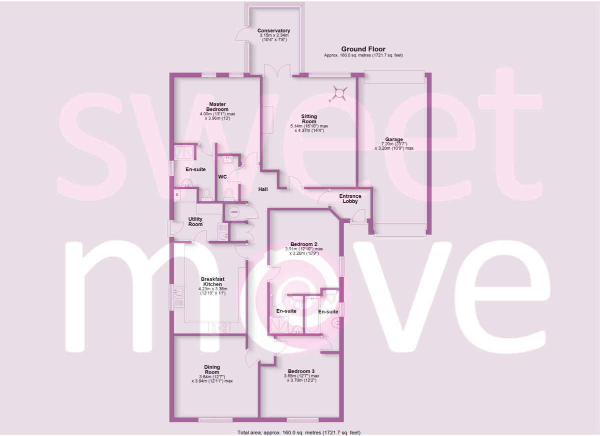 DESCRIPTION This property is a well presented detached bungalow situated in a non estate position. It has three double bedrooms, all with en suites, a kitchen breakfast room with Rangemaster stove, utility room, two reception rooms and a conservatory which looks over the enclosed well maintained garden which enjoys an open aspect to the rear. To the front is an enclosed large driveway and an attached 'drive through' garage.