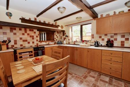 BREAKFAST KITCHEN 13' 10" x 11' (4.22m x 3.35m) Double glazed window to the side aspect. Fitted kitchen comprising of a one and a half bowl single drainer unit with mixer taps and cupboards under. Further range of matching units. Work surfaces with tiled splash backs. Rangemaster cooker with extractor hood over, ceiling beams, radiator, door to: