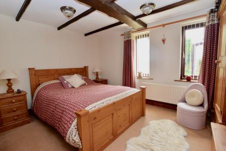 BEDROOM THREE 12' 7" x 12' 2" (3.84m x 3.71m) Double glazed window to the front aspect. Ceiling beams, recessed ceiling lights & wall lights, radiator.