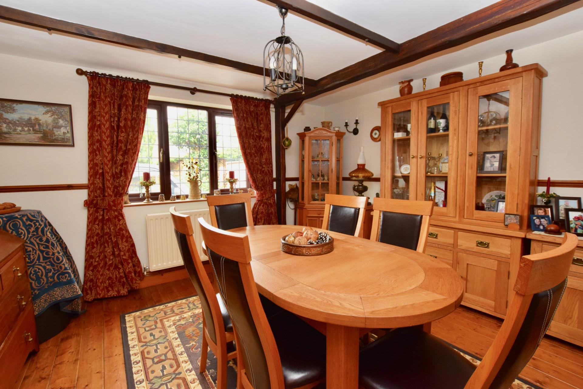 DINING ROOM 12' 7" x 12' 11" (3.84m x 3.94m) Double glazed window to the front aspect. Serving hatch from kitchen, exposed wooden floor, ceiling beams, radiator.
