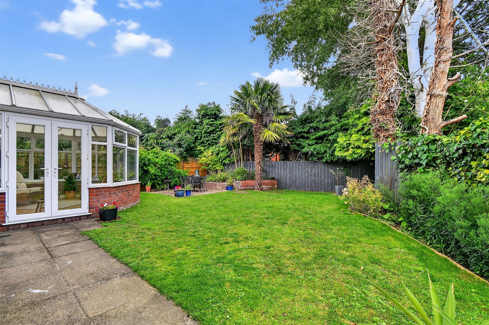 Outside - Small front garden, driveway leading to single garage, gate to side garden with lawn borders, rear lawned garden with patios, timber fence boundary, outside tap