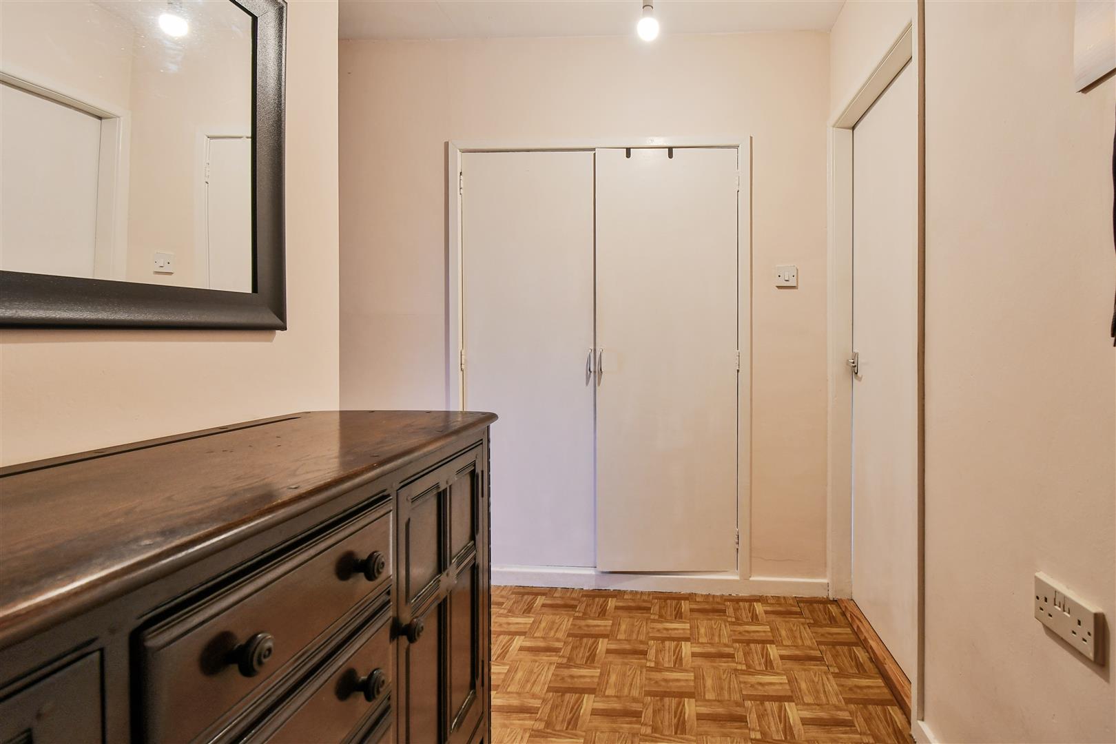 BEDROOM ONE uPVC double glazed window to the rear elevation overlooking the communal gardens. Shelved wardrobe cupboard.