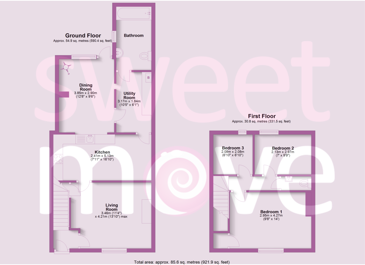 DINING ROOM 12' 8" x 9' 6" (3.86m x 2.9m) Window to rear aspect, door to rear. Laminate flooring, radiator.