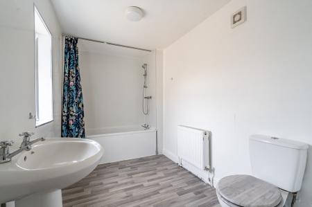 BATHROOM Window to side aspect. White suite comprising bath with shower over, WC and basin. Radiator.