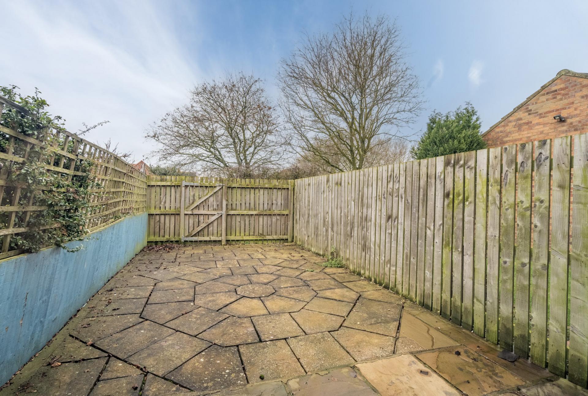The property features a modern grey kitchen that makes excellent use of the available space, complete with plumbing for a washing machine, integrated oven with gas hob above, and space for a fridge/freezer. The spacious living/dining room benefits from patio doors opening onto a low-maintenance paved garden, which includes gated access to the rear path. Additional under-stairs storage is also available.
