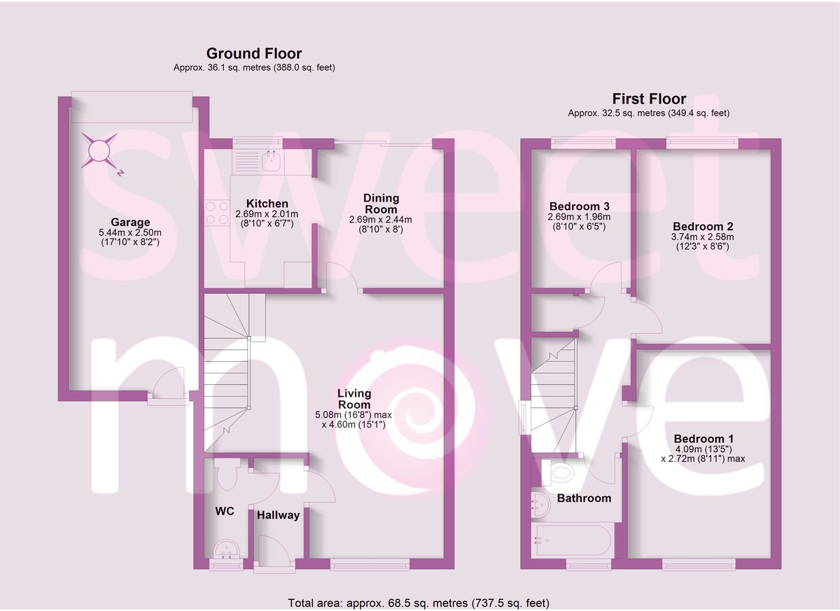 Inside, you are met with the hallway which then leads to the spacious living room and dining room. The dining room then flows seamlessly into the kitchen through an archway, creating an open and welcoming living space. The ground floor is flooded with natural light, thanks to large surrounding windows and a sliding door opening out to the rear garden. To the first floor are two well-proportioned double bedrooms, a third smaller bedroom, and a family bathroom.