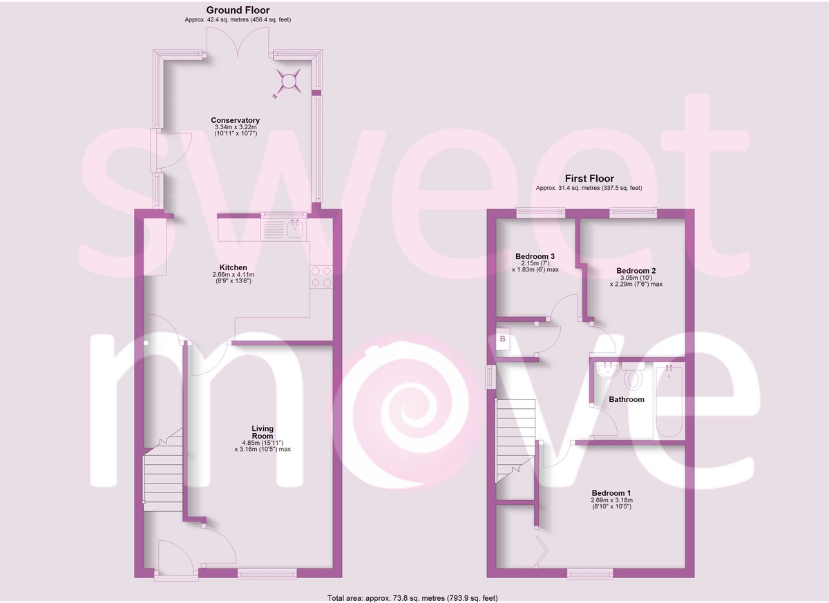 BEDROOM TWO 10' x 7' 6" (3.05m x 2.29m) Window to rear aspect. Radiator.