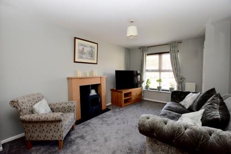 LIVING ROOM 15' 11" x 10' 5" (4.85m x 3.18m) Window to front aspect. Log burner style gas fire, radiator.