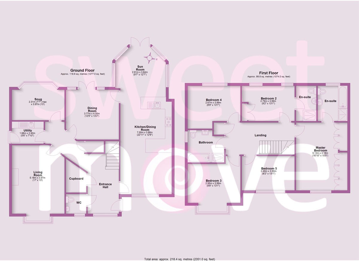 As you step inside the welcoming and spacious entrance hall guides you between three sizeable reception rooms, including a formal dining room, bay-fronted living room and snug/office, in addition to the full-length kitchen/dining/sun room which is bathed in light throughout the day thanks to both east and west facing aspects. Moving upstairs, the five bedrooms are generously proportioned, with the two main bedrooms having ensuite facilities and fitted wardrobes. Bedroom five is currently fitted out as a dressing room and the family bathroom is well-appointed with a separate bath and shower.