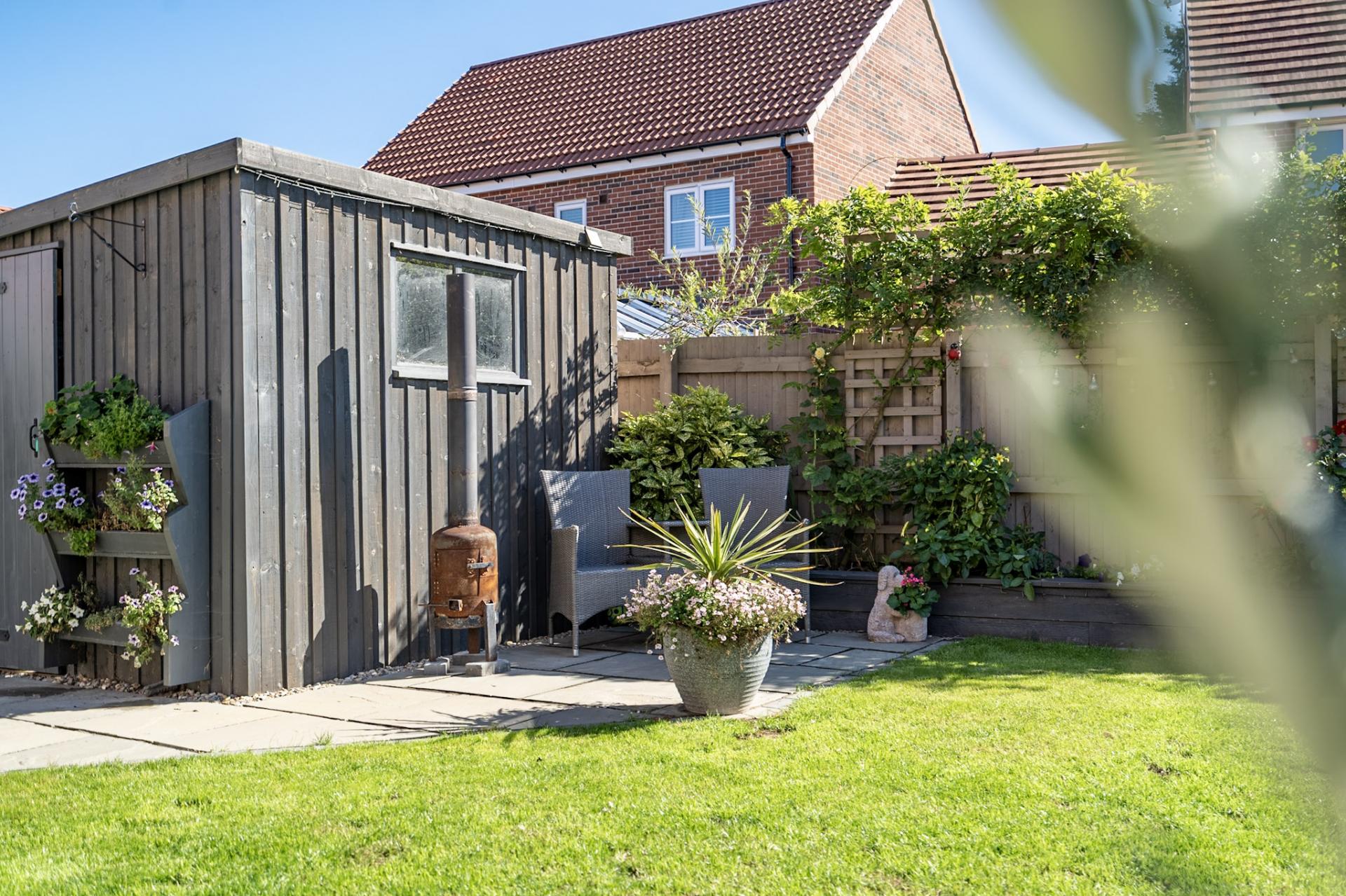 To the front of the property there is driveway parking for two vehicles and additional gravelled parking space, there is gated side access to the rear which is enclosed. Landscaped to include raised flower bed borders, lawn area and additional patio space and secure garden shed.