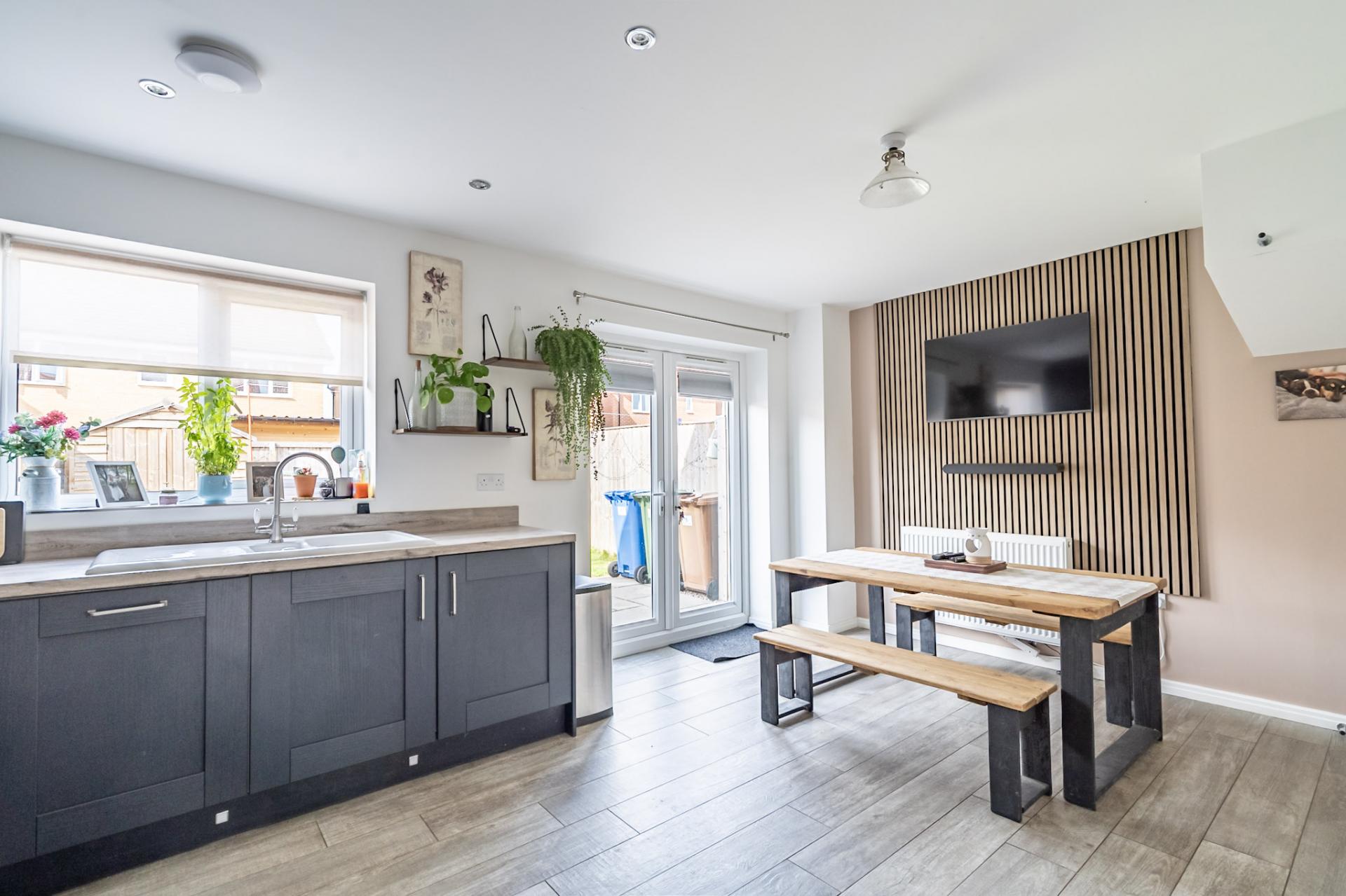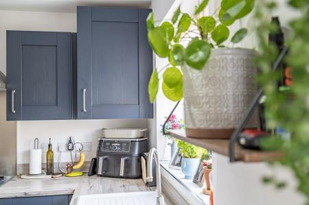Upon entry there is a convenient downstairs WC, cosy living room to the front the perfect place to relax. The rear of the property is a very good sized kitchen/dining room, including fitted appliances: integrated fridge/freezer, dishwasher and washing machine. French doors lead into the well landdscaped rear garden, offering two seating areas to enjoy the south west facing rear garden. There is also the practicallities of a outside tap and garden shed.
