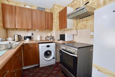 KITCHEN 10' 1" x 7' 1" (3.07m x 2.16m) Door to side, window to side aspect. Range of fitted wall and base units with worktops, plumbing for washing machine. Freestanding electric cooker. Stainless steel sink and drainer, radiator.