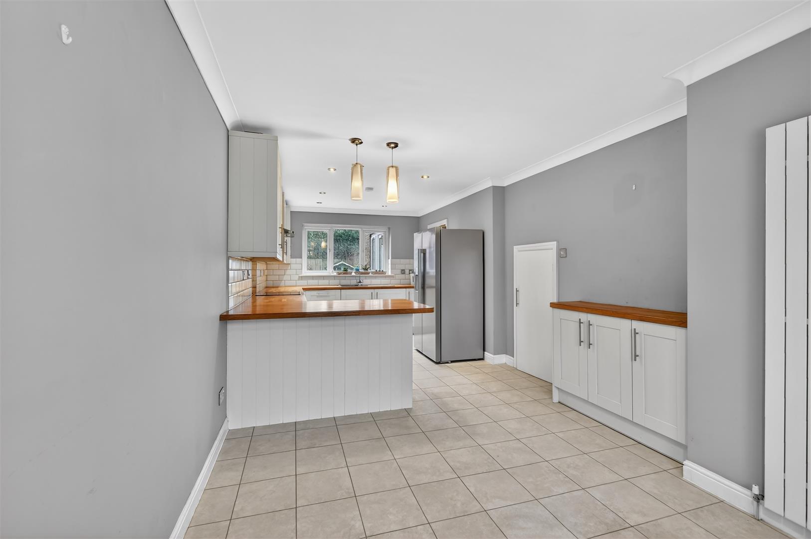 - 25FT KITCHEN/DINING SPACE WITH SHAKER CABINETRY, OAK WORKTOPS AND BREAKFAST BAR