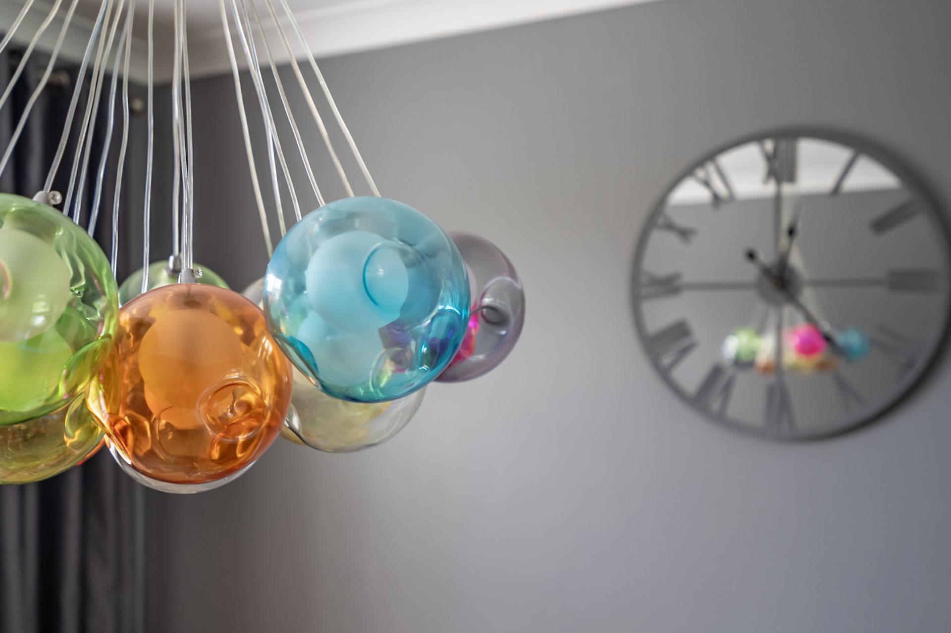 To the front, a wide gravelled driveway provides ample parking and leads to the double garage with two electric roller doors. A lawned garden sits to the side, with gated access through to the rear.