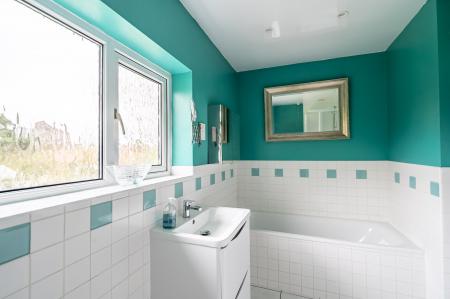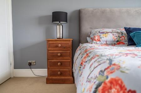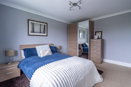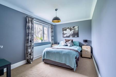 To the first floor, the generous landing provides loft access and storage cupboards. The main bedroom benefits from two fitted wardrobes and a recently refurbished en-suite shower room featuring modern matt-black fittings. The three additional bedrooms are all comfortable doubles, served by a family bathroom comprising a bath, separate shower, WC and washbasin.