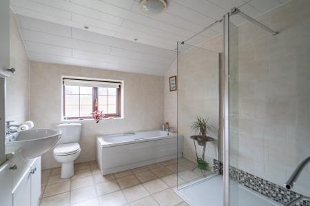 To the first floor are four bedrooms, with the main bedroom benefiting from an en suite shower room. The house bathroom is well proportioned and serves the remaining bedrooms. Throughout the home, wooden doors with barn-style latches echo the cottage's charming heritage.
