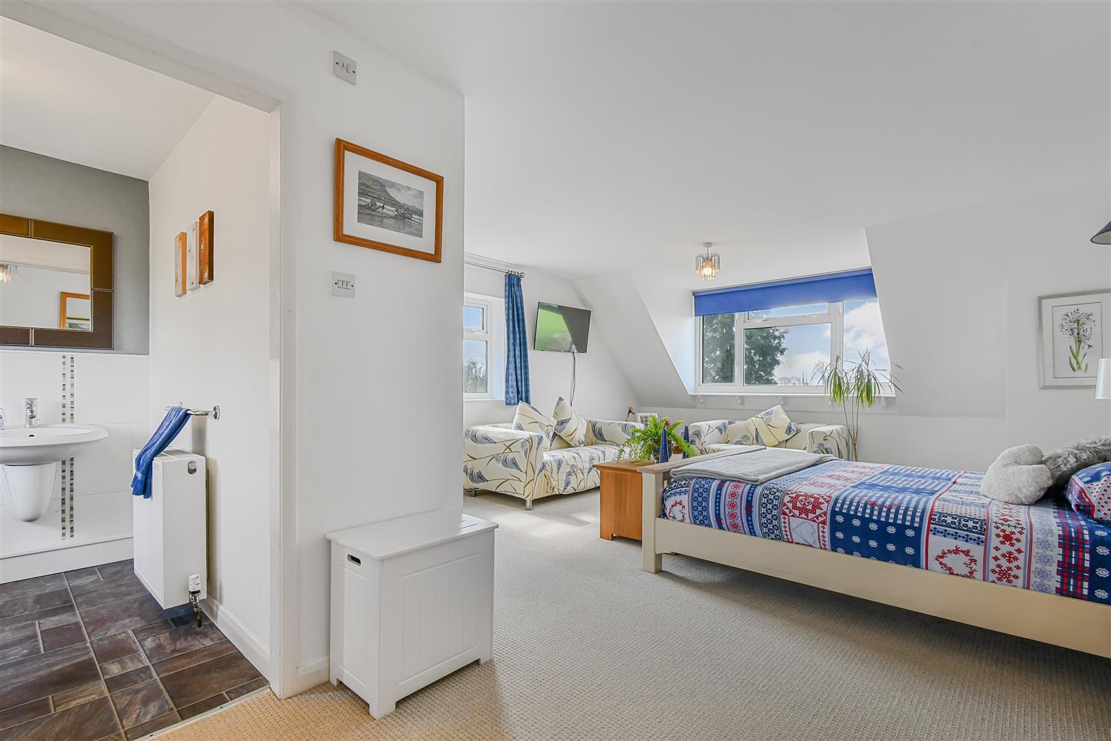 On the FIRST FLOOR is the PRINCIPAL BEDROOM SUITE comprising a 23'6 x 15' bedroom having triple aspect with outstanding views, fitted wardrobes, LUXURY EN SUITE SHOWER ROOM/WC and EN SUITE DRESSING ROOM/STUDY with built-in wardrobes.