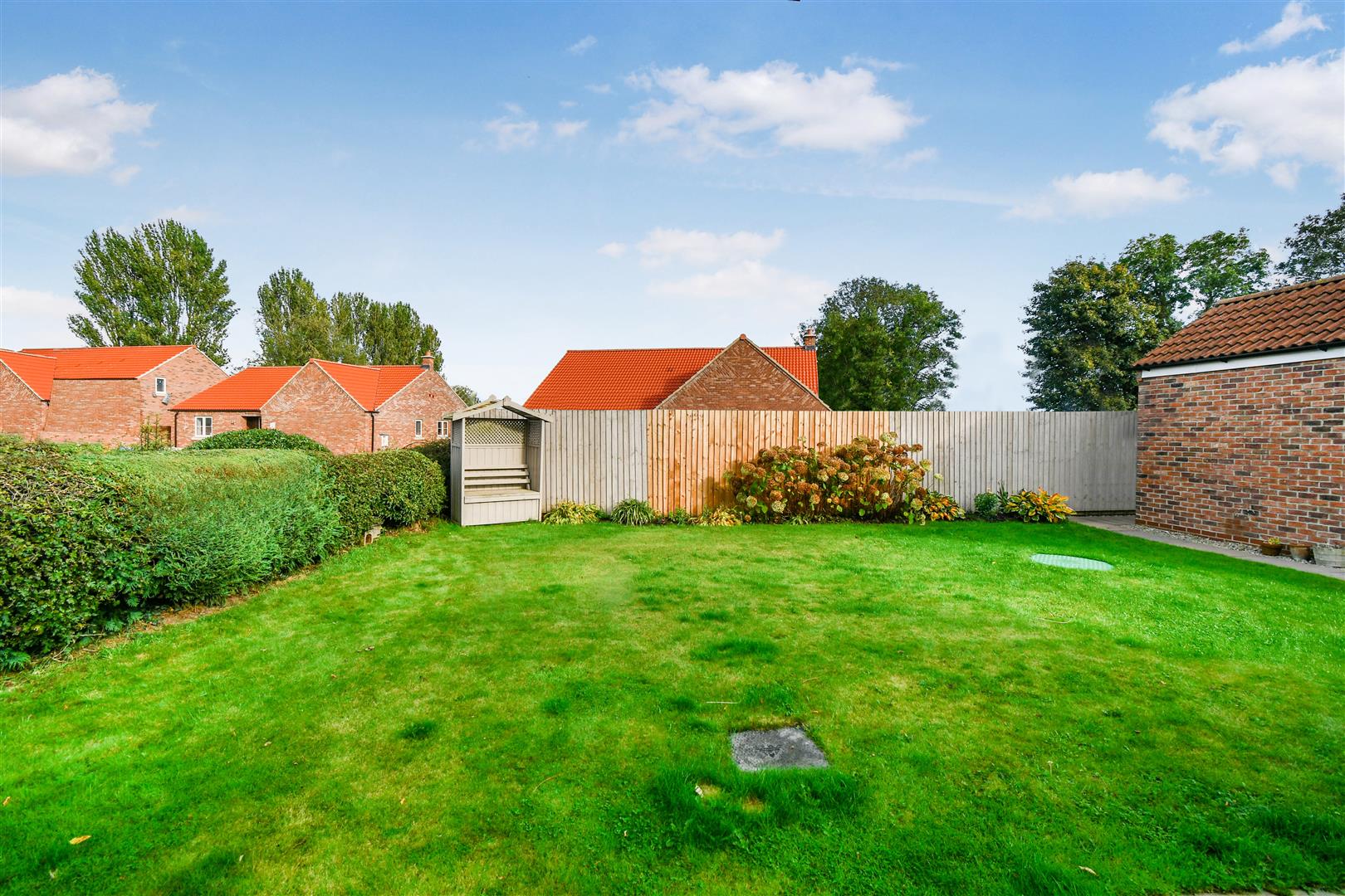 Immediately to the rear of the house is a stone flagged sun patio beneath a feature timber constructed pergola, adjoining a mainly laid to lawn garden with fenced boarders.