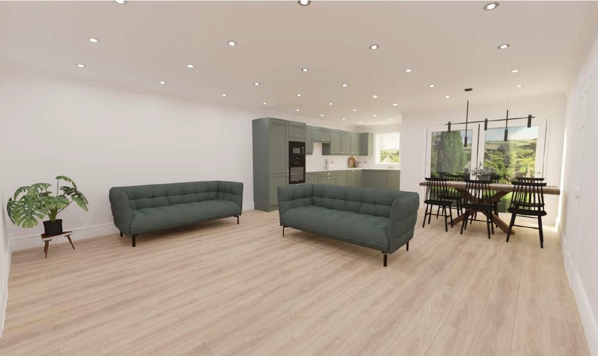 Open Plan Living Room - Large open plan space with large living room area with windows to front, dining area with patio doors to rear garden. Door to family room and open to